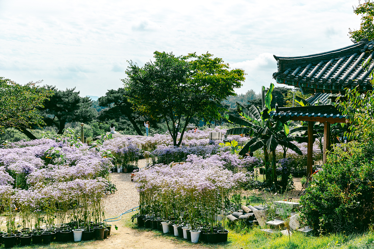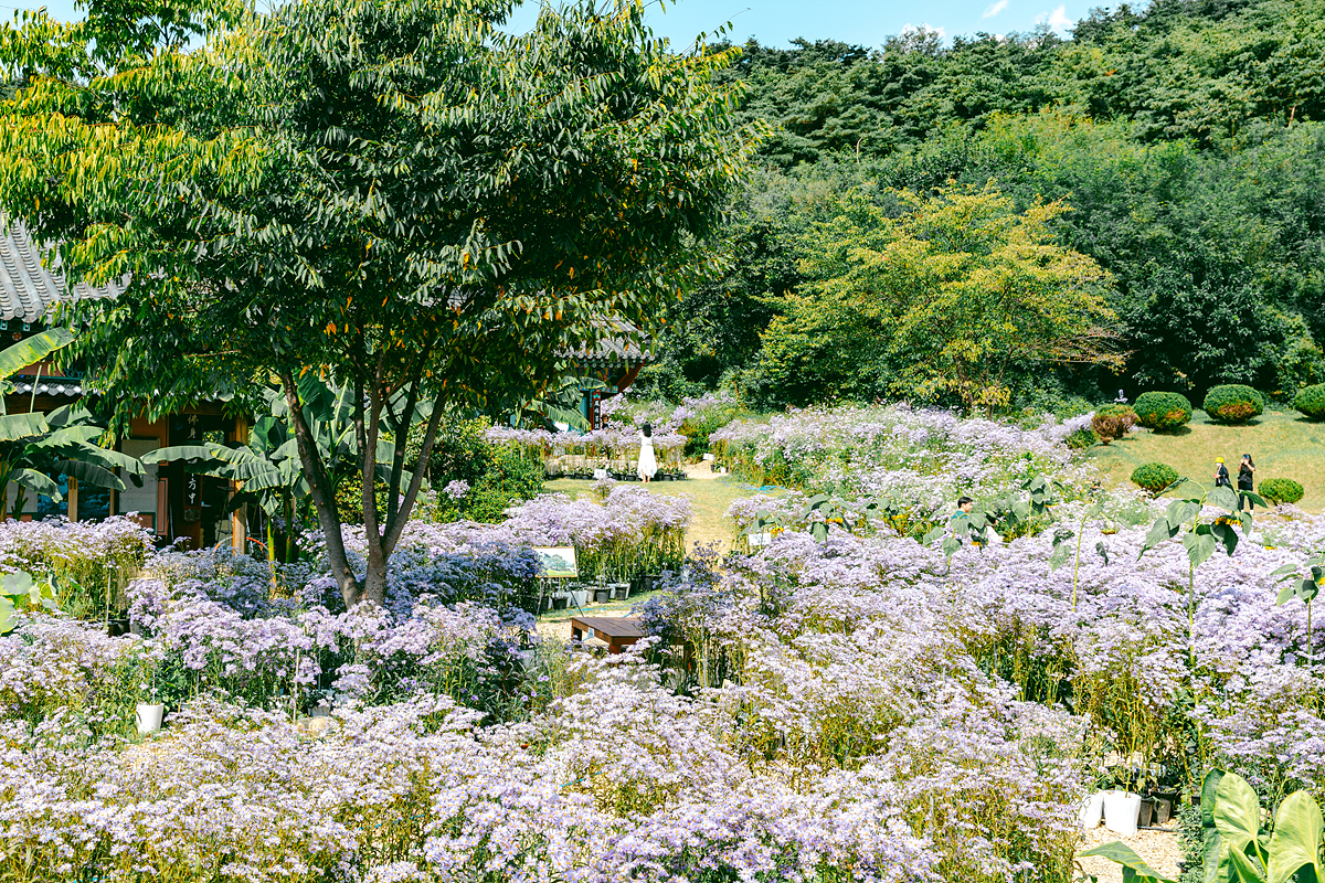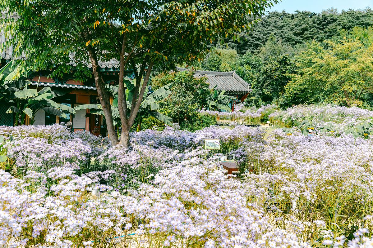 저는 9월말에 방문을 했는데요. 입구에서부터 개미취가 눈에 들어오기 시작했습니다. 아스타 계열의 국화와 비슷하지만 색감이 더 은은하고 화사해 보여서 가을 분위기를 물씬 풍겨주더군요.