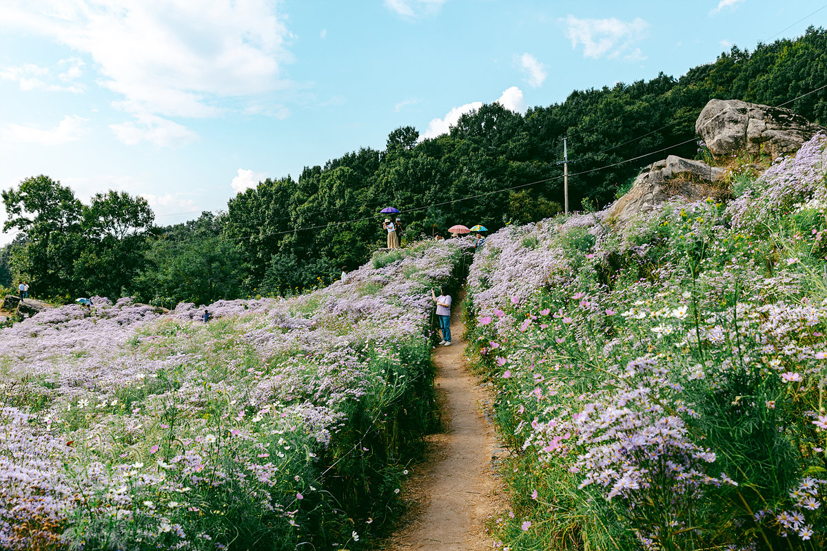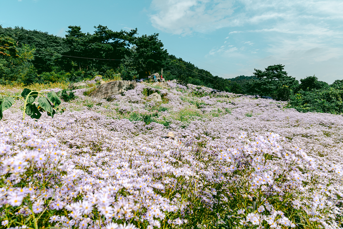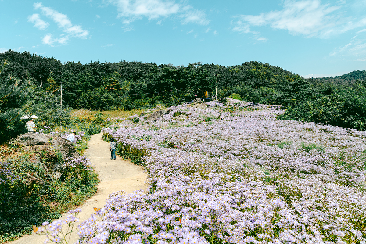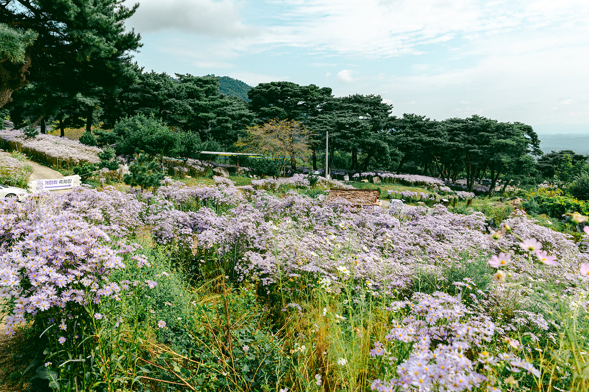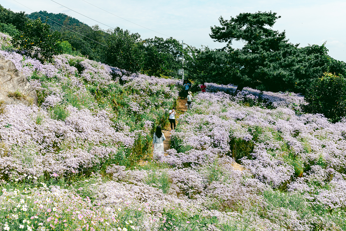 저는 맑은 날씨에 방문했는데, 날씨가 흐리거나 비가 내릴 때는 또 다른 운치가 있을 것 같았습니다. 특히 아침 일찍 안개가 낄 때는 운무 사이로 피어난 보랏빛 개미취가 환상적인 분위기를 만들어 줄 듯합니다. 개화 기간은 대략 한 달 정도 이어지니, 축제가 끝나는 10월 중순 전에 다녀오시면 가장 아름다운 풍경을 보실 수 있을 거예요.