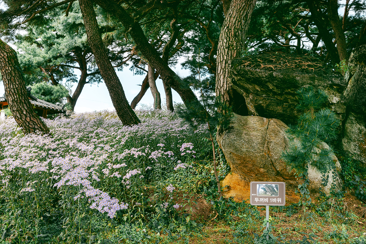 사찰 뒤편 언덕 쪽으로 이어진 산책로를 따라가면 봉천마루, 좌선대 등 다양한 촬영 명소도 만나게 됩니다. 사실 굳이 포토존을 찾지 않더라도, 어느 길목에서든 보랏빛 개미취를 배경으로 멋진 사진을 남길 수 있을 정도로 풍경이 잘 어울립니다. 중간중간 코스모스가 섞여 있어 색감의 조화도 인상적이었습니다.