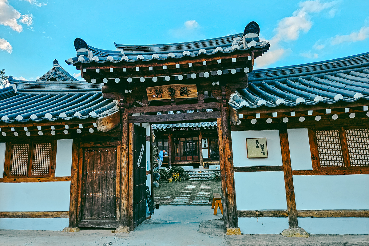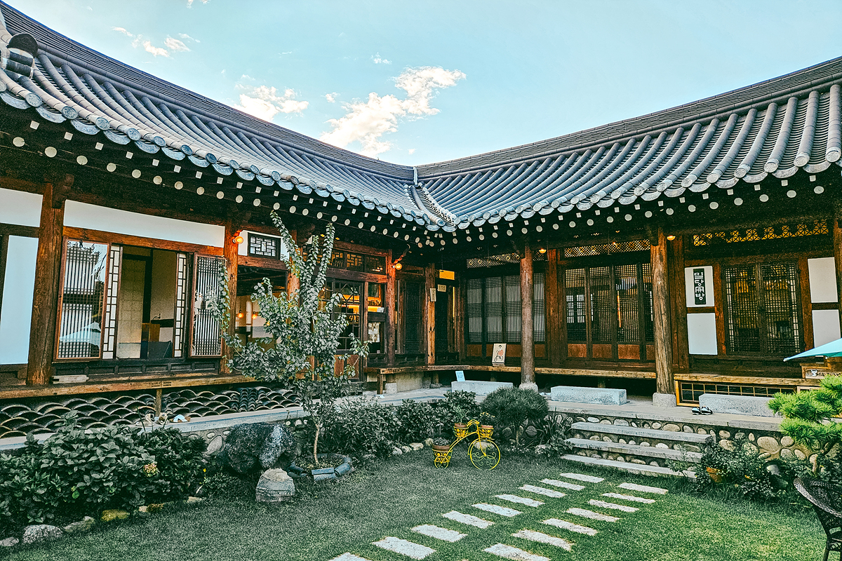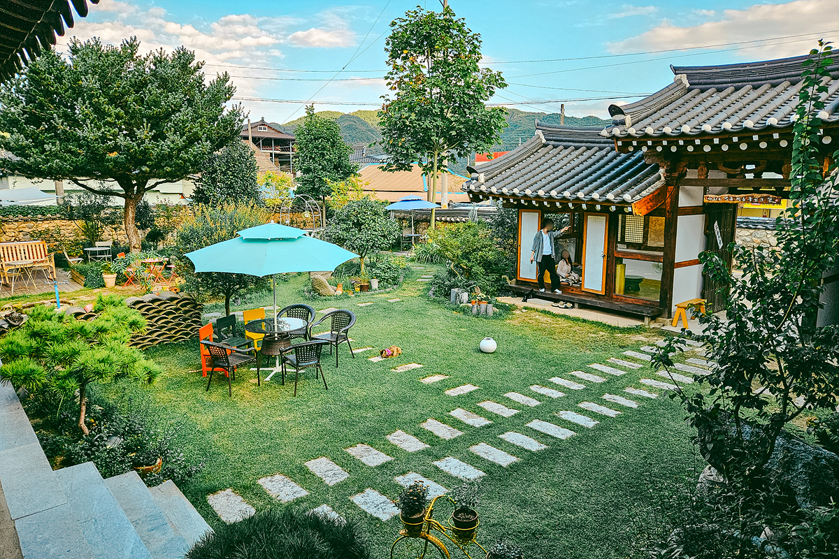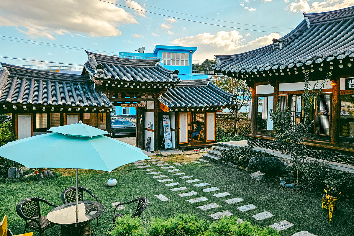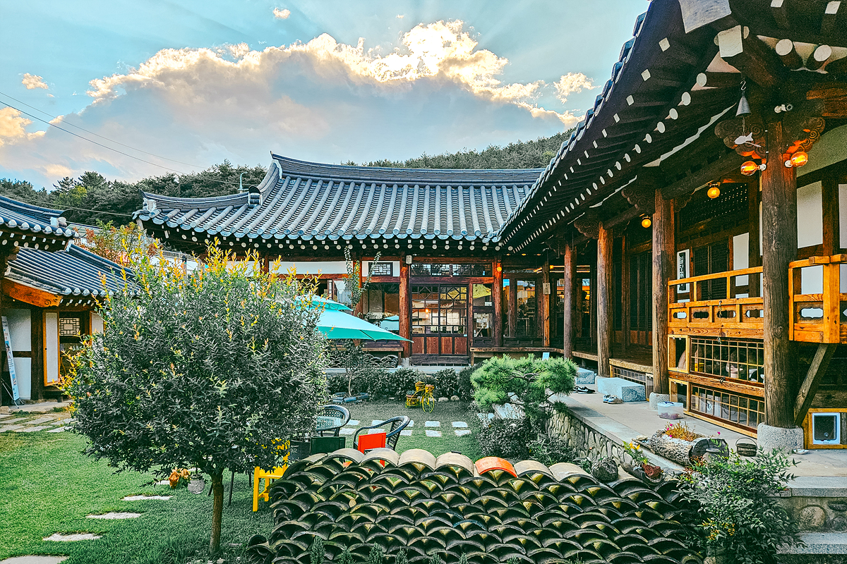 황매산 억새를 실컷 감상한 뒤 오후 늦은 시간에 도착한 소북은 실제 옛 한옥의 원형을 최대한 살린 채로 리모델링한 곳으로, 마당과 대문, 기와지붕까지 고스란히 옛 정취를 간직하고 있었습니다. 대문을 통해 들어서자 넓은 마당과 함께 마치 양반댁 사랑채에 들어선 듯한 고즈넉한 분위기가 느껴졌습니다.