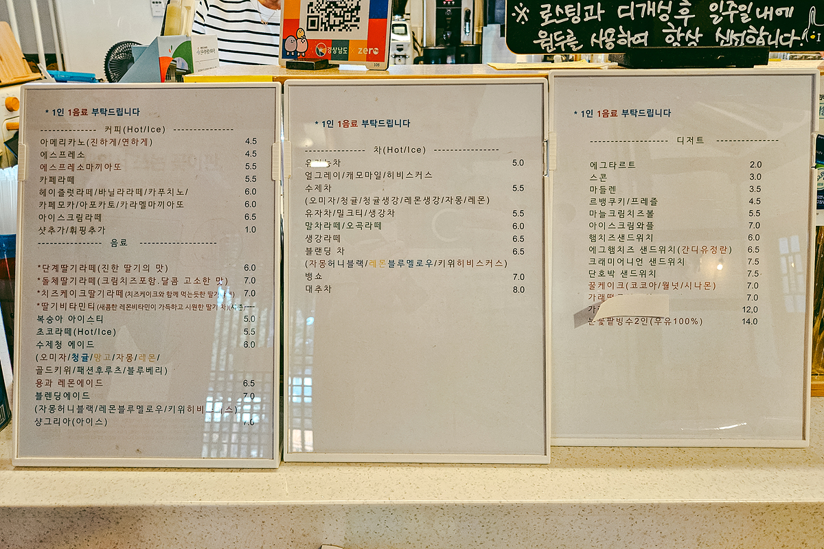 처음엔 어디로 들어가 주문해야 하는지 몰라 잠시 마당에서 머뭇거렸는데, 사장님께서 친절하게 주문하는 곳을 안내해 주셨습니다. 주문 공간은 한옥의 두 면이 만나는 모퉁이 부분에 위치해 있고, 안으로 들어갈 때는 신발을 벗고 들어가야 합니다.