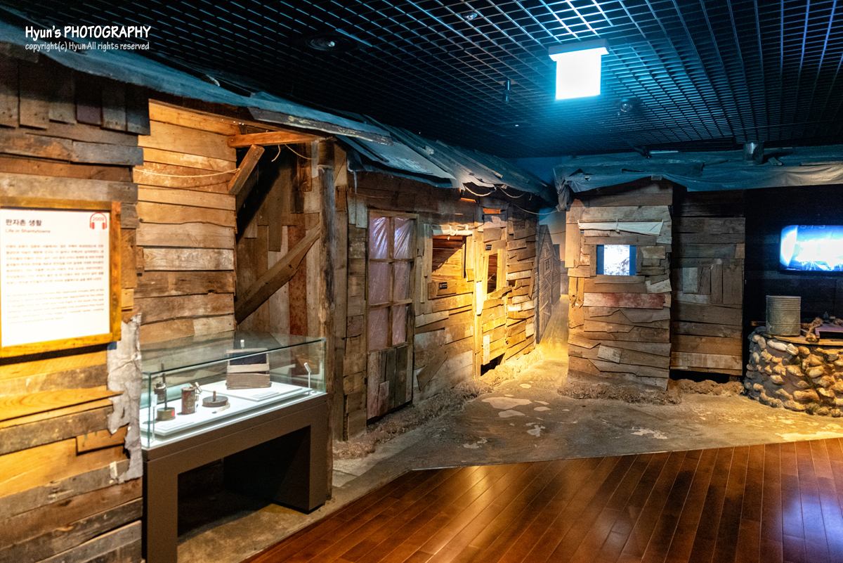 수많은 독립운동가들 덕분에 어려운 시기를 보낸 후, 광복을 맞이했지만, 또다시 남과 북 둘로 갈라진 한반도의 역사는 바로 한국전쟁이라는 큰 비극을 다시 맞이하게 되지요. 한국전쟁 당시 피난민들의 삶과 생활을 엿볼 수 있는 판자촌 같은 전시공간도 따로 마련되어 있어 아이들에게 당시 전쟁의 참상을 간접적으로나마 알려줄 수 있는 좋은 자료가 될 수 있을 것 같습니다.