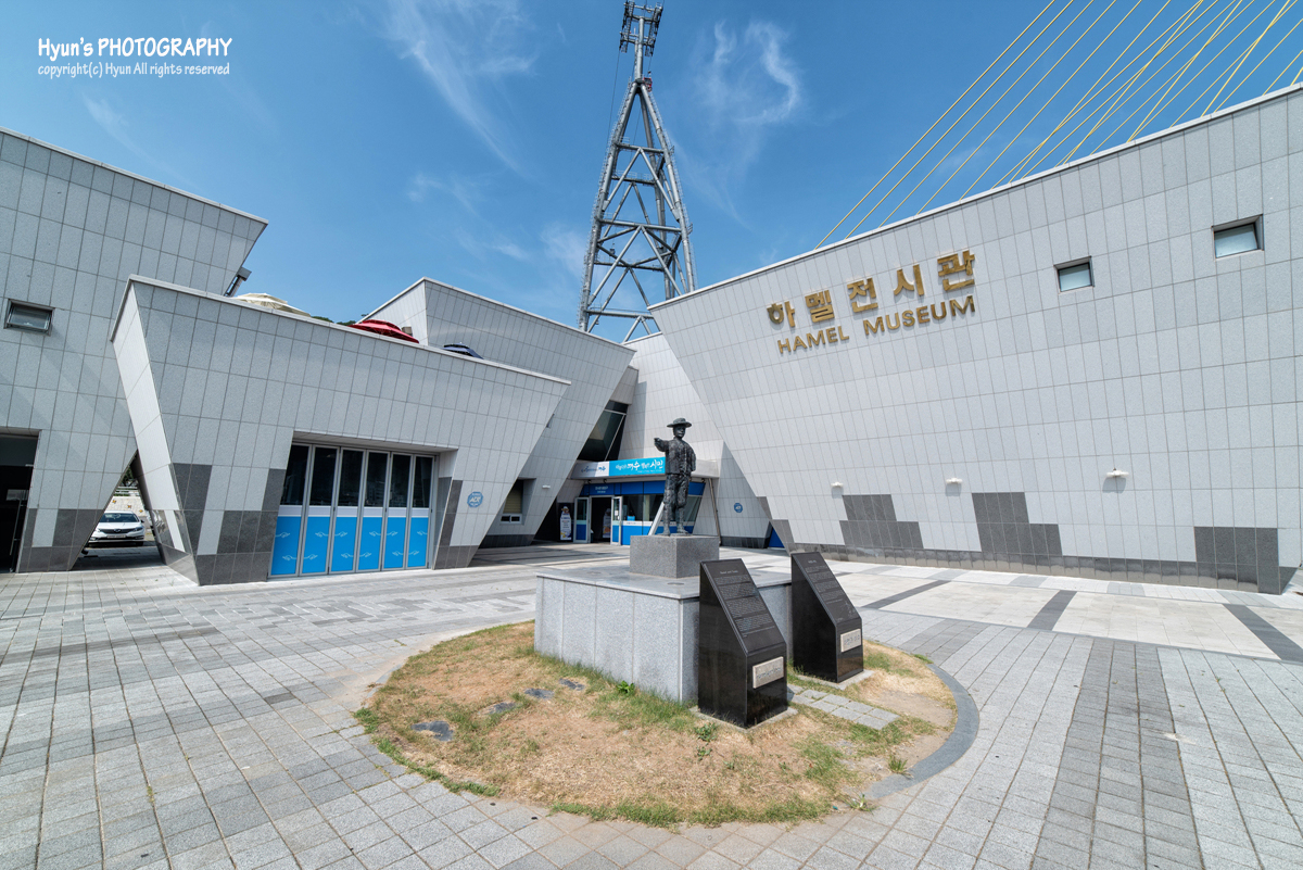 돌산대교 야경을 보기 전, 낮에는 잠시 하멜등대와 하멜전시관을 다녀 왔었는데요. 하멜등대를 찾아가는 길은 이순신광장에서 해안도로를 따라 쭉 가다보면 거북선대교 바로 아래에 위치해 있습니다. 하멜은 다들 알다시피 네덜란드 사람으로 조선시대 때 제주도에 표류를 하게 되었는데, 하멜 일행이 제주도를 비롯해 조선 곳곳에 거처하며 마지막으로 머물렀던 곳이 바로 이곳 여수라고 합니다. 그래서 이곳 여수에도 하멜전시관이 따로 마련되어 있는 것 같더라구요.