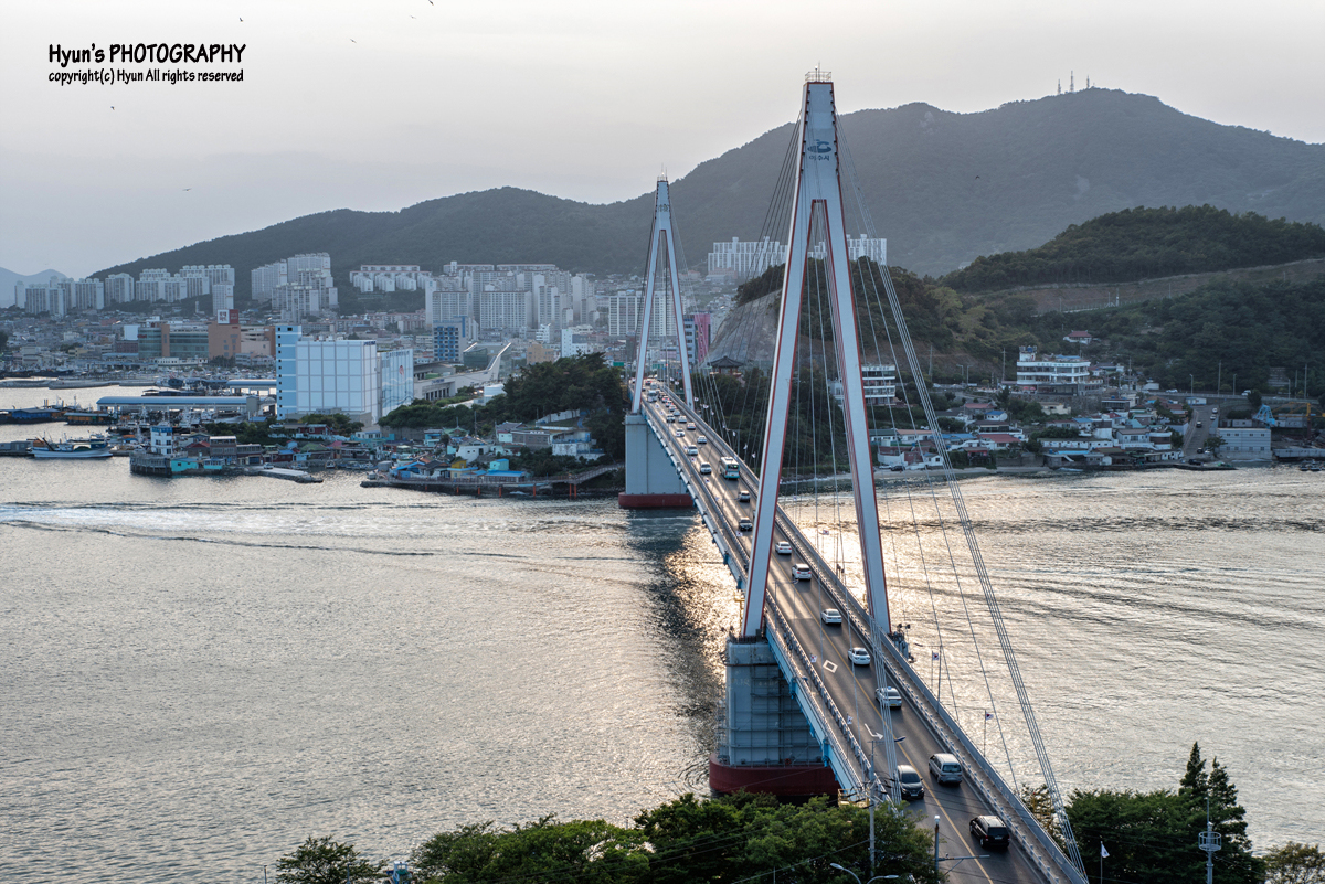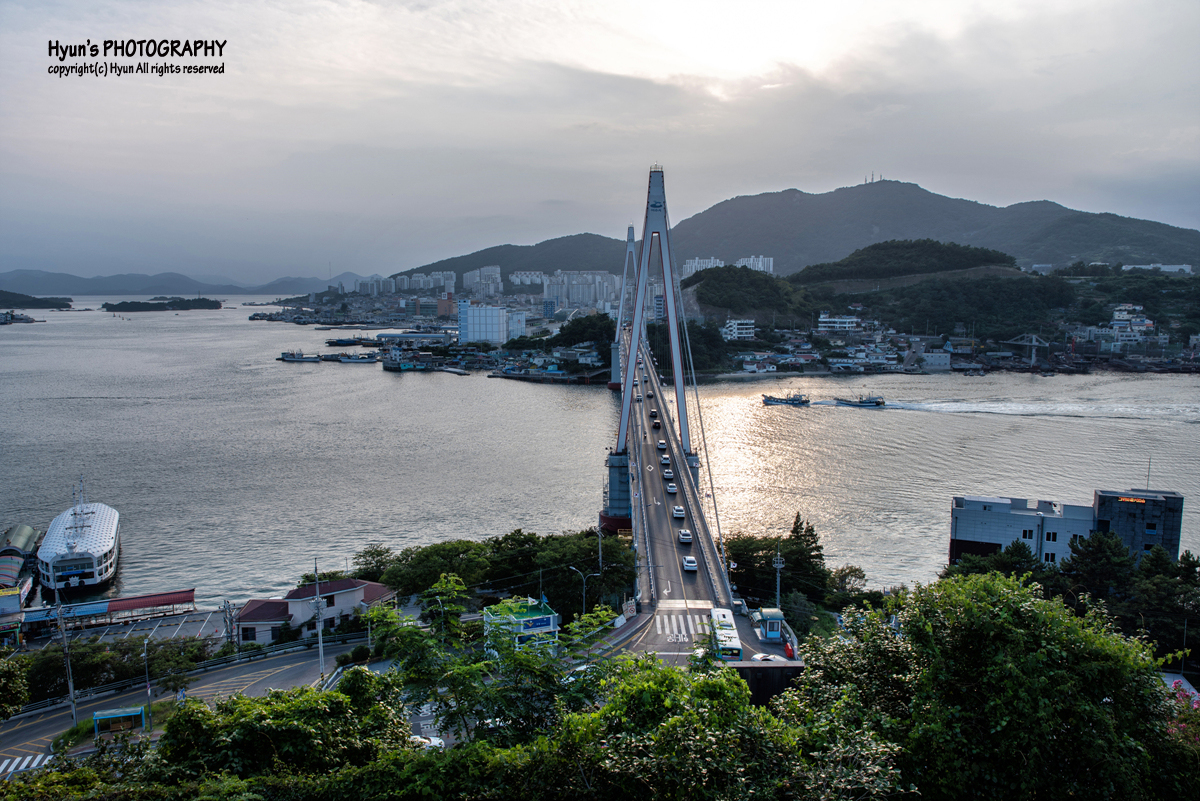 돌산공원 전망대는 약간 언덕 쪽에 위치해 있는데, 주차장에서 내리면 바로 산책로 쪽으로 전망대 데크가 있어 이곳에 서게 되면 돌산대교가 잘 보입니다. 야경을 보러 간 것이지만, 저는 해지기 전 조금 일찍 도착을 했습니다.