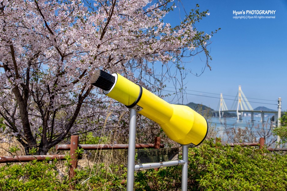 가는 길에 보이는 노란색 조형물이 뭘까 봤는데, 처음엔 망원경인줄 알았지만, 알고 보니 거금대교를 만들 때 사용된 와이어의 단면을 보여주는 조형물이었습니다.