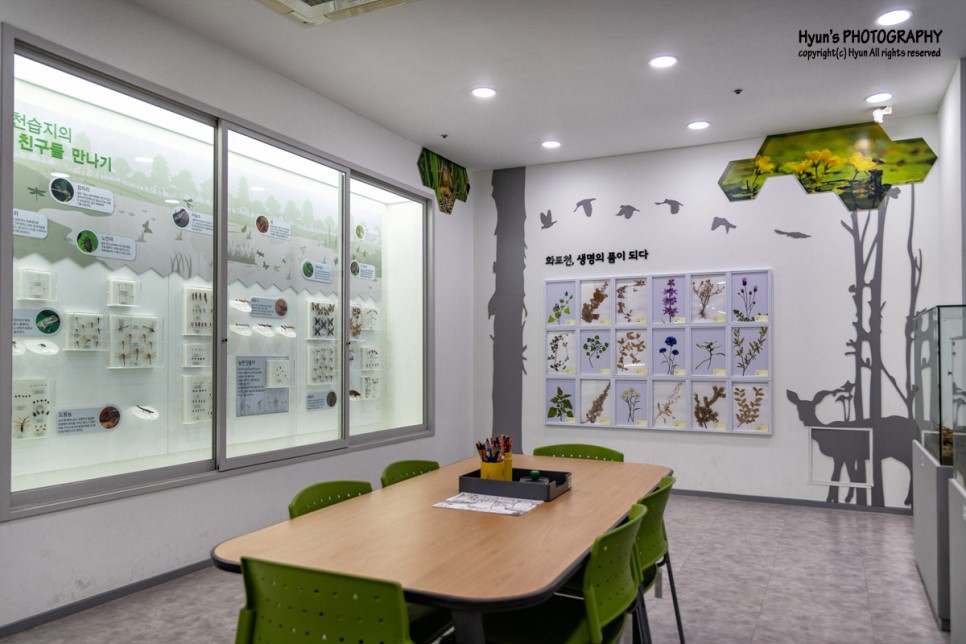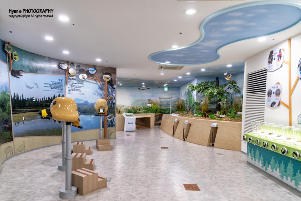 화포천 생태학습관을 중심으로 꽤 넓은 부지에 생태공원이 조성되어 있습니다. 생태학습관 내부에는 화포천 주변에 서식하고 있는 동식불을을 알기 쉽게 모형으로 만들어 놓은 것을 볼 수 있어요.