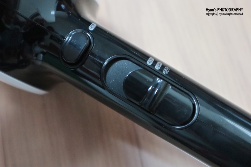 사용 및 조작법은 간단합니다. 바람세기는 HIGH, LOW 두 단계로 조절할 수 있고, 위에 버튼은 뜨거운 바람과 찬 바람을 번갈아 가며 나오게끔 하는 스위치입니다. 그래서 뜨거운 바람+강한 바람, 뜨거운 바람+약한 바람, 차가운 바람+강한 바람, 차가운 바람+약한 바람 4가지 세팅을 사용할 수 있어요. 찬바람 역시 미온이 아닌 확실하게 차가운 바람이 나와줘서 시원하고 좋았습니다.