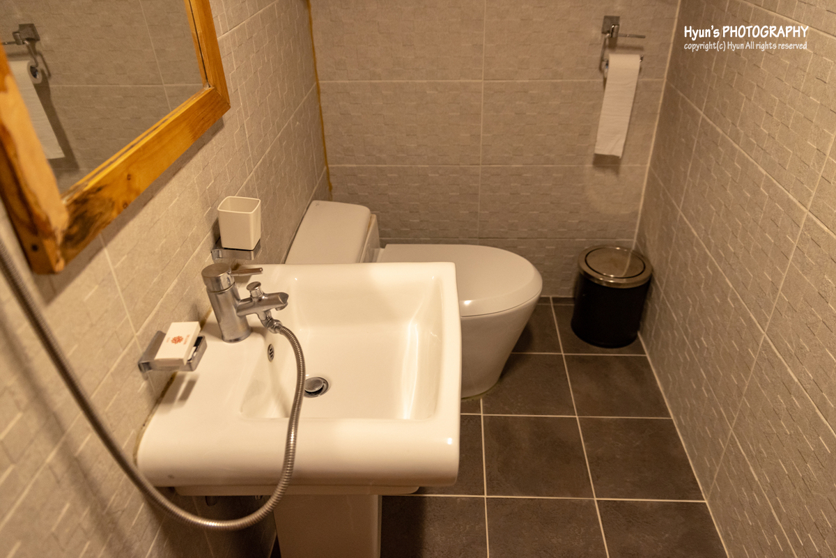 욕실 역시 객실 내에 프라이빗 하게 깨끗하고 깔끔한 모습으로 있습니다. 원래 전통한옥이나 고택 같은 곳들은 화장실이 밖에 있는 경우가 많아 불편할 수 밖에 없는데, 그래도 이곳은 숙소로 사용하기 위해 지어진 곳이라 그런지 객실마다 화장실이 각각 마련되어 있어요. 물론 샴푸나 린스 등 어메니티도 구비가 되어 있습니다.