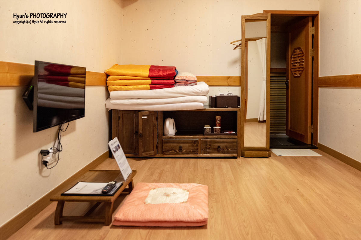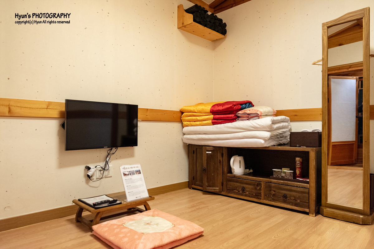 앞서 말씀 드렸듯, 제가 하룻밤 지낼 객실은 이곳에서 가장 작은 2인실 온돌룸이었습니다. 혼자 혹은 두 명이서 지내기에 적당한 객실이었는데요. 지금은 여름이라 온돌룸의 장점인 뜨끈뜨끈한 온돌의 기운을 느낄 순 없었지만, 겨울에 방문한다면 제대로 된 온돌룸의 기운을 느낄 수 있을 것 같았습니다.