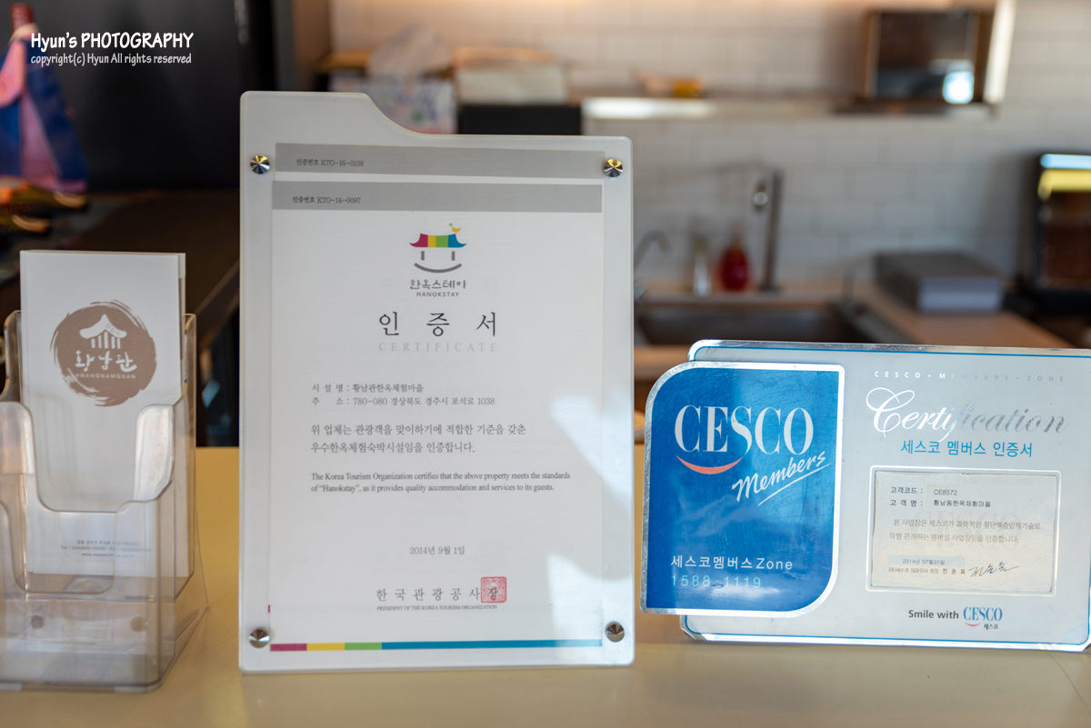 아무래도 한옥호텔이다 보니 경주를 찾는 외국인 관광객들도 자주 방문을 해서인지 전통공예품이나 기념품들도 판매를 하고 있더군요. 최근 경주에 한옥호텔이 점점 늘어나고 있는 가운데, 경주 황남관은 한국관광공사 품질인증을 받은 숙소라 나름 믿고 편안한 하룻밤을 보낼 수 있을 것 같았습니다.