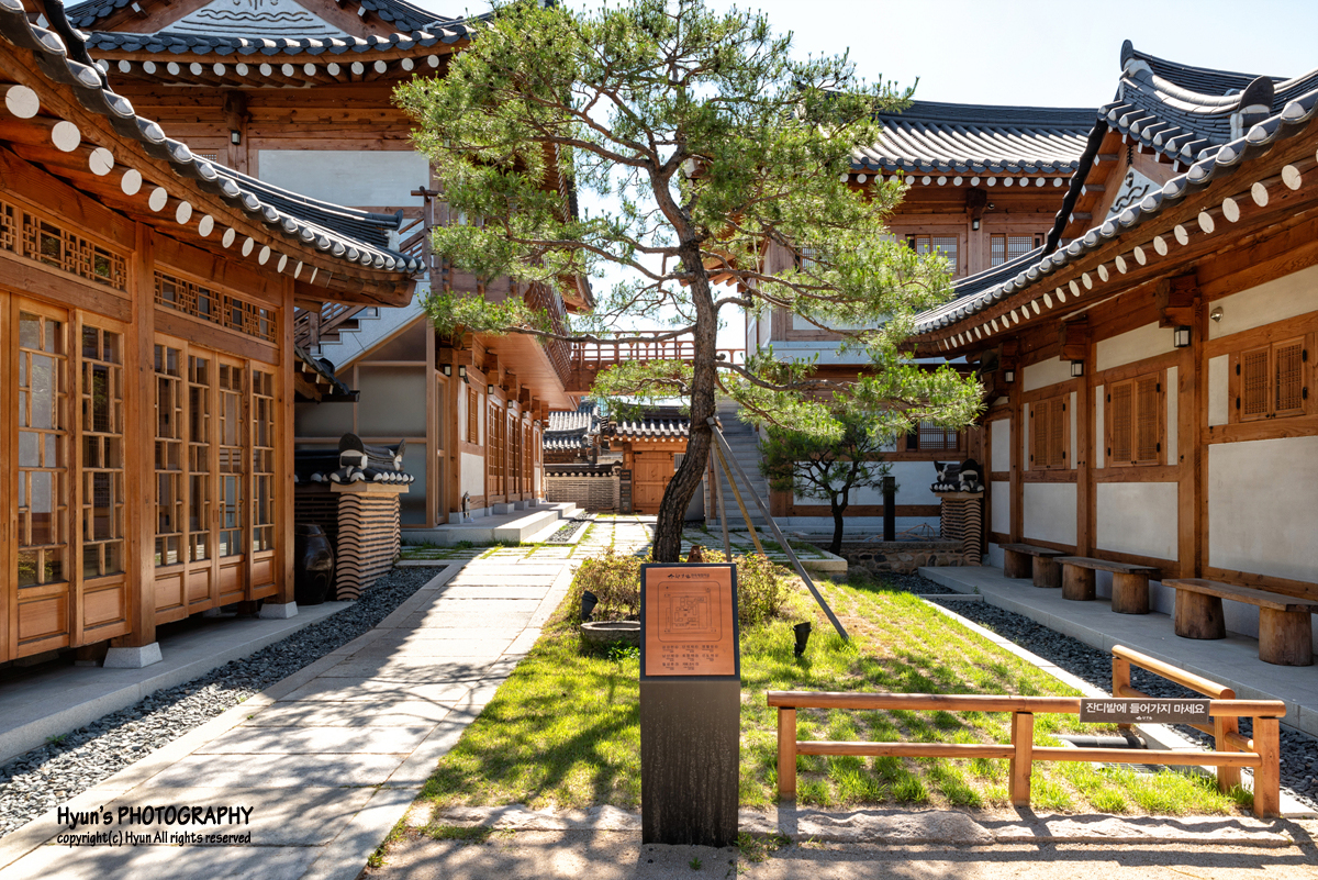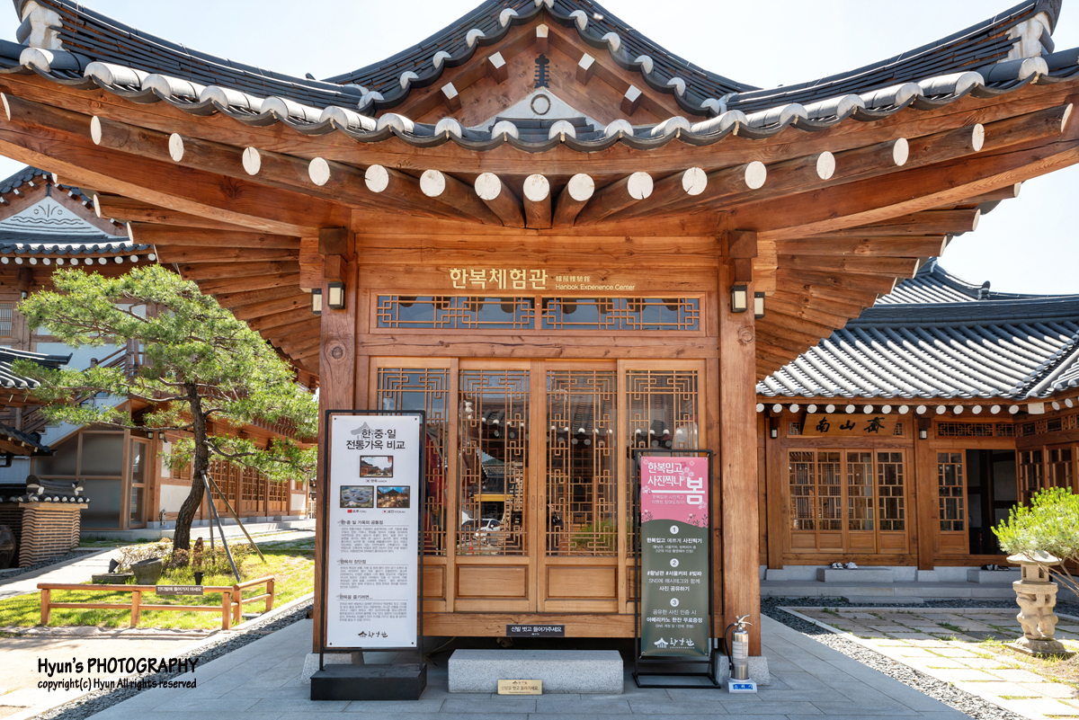 객실로 들어가기에 앞서 마당 주변을 살펴보니, 생각보다 규모가 꽤 크더라고요. 로비에서 봤을 땐 몰랐는데, 마당 안쪽으로 들어와 보니 객실이 마련된 별채들이 많아 보였습니다. 마당도 예쁘게 잘 꾸며져 있고, 또한 마당 중앙에는 한복체험관이 따로 마련되어 있어 한옥을 배경으로 사진을 찍거나 이곳에서 한복을 대여하여 황리단길을 거닐어도 좋을 것 같았어요.