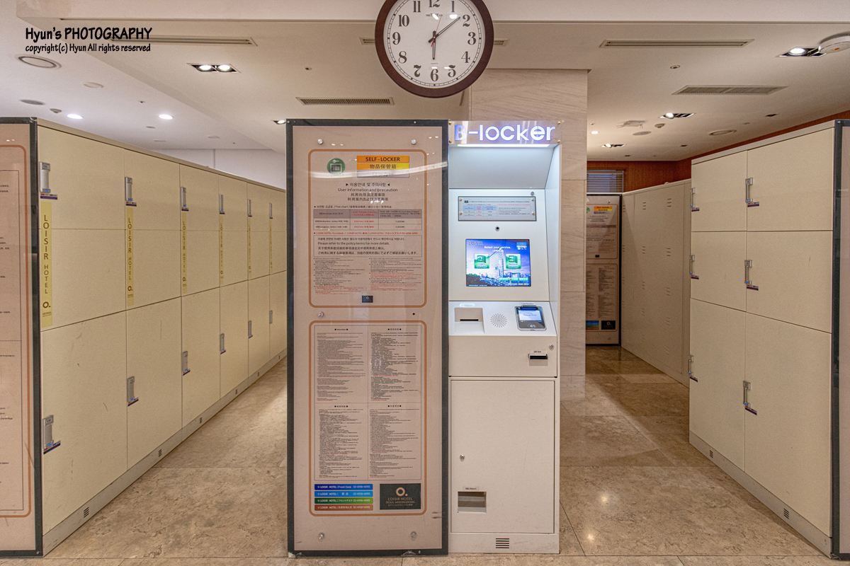 로비 한쪽에는 무인보관함인 락커가 마련되어 있는데요. 원래 다음날 일찍 체크아웃 할 때 짐을 잠시 맡겨야 하는 경우에는 그냥 로비 프론트 직원에게 맡기고 이름표나 인식표를 받아가는 경우가 대부분인데, 여긴 실제 코인락커처럼 무인보관함이 준비되어 있어 편리하고 안전하게 짐을 맡길 수 있습니다. 단, 최대 보관시간은 8시간까지이고 8시간이 초과되면 별도의 추가요금이 발생하니 참고하세요.