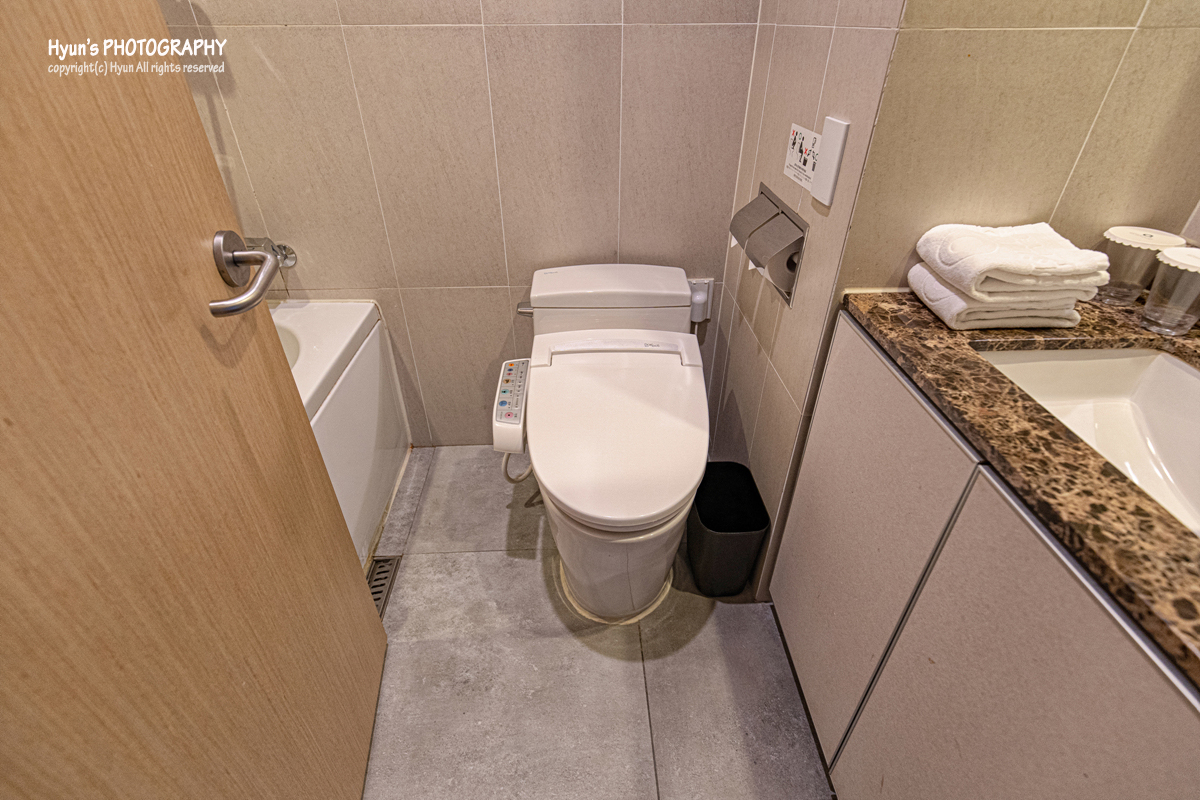 아무래도 객실 크기가 작다 보니 욕실도 그리 넓은 편은 아니었습니다. 그래도 세면대와 함께 욕조까지 있어 사용하는데 큰 불편은 없었고요. 단, 욕실이 좁다 보니 샤워를 할 때 물이 변기 쪽으로 튈 수도 있어 반드시 샤워커튼을 치고 하는 것이 좋습니다. 이상 남산뷰 호텔로 좋은 르와지르 명동 호텔에 대해 소개해 드렸는데요. 앞서 말씀 드렸다시피 제대로 된 남산뷰를 보시려면 수페리어 이상 등급의 객실을 선택하시고요. 저렴하게 가성비 좋고 위치에 대해서만 만족을 하신다면 스탠다드룸 객실도 나쁘지 않은 선택이 될 것 같습니다.