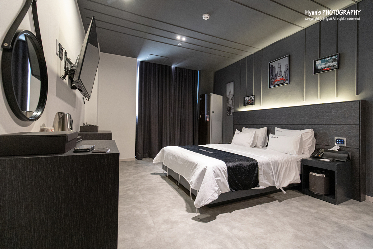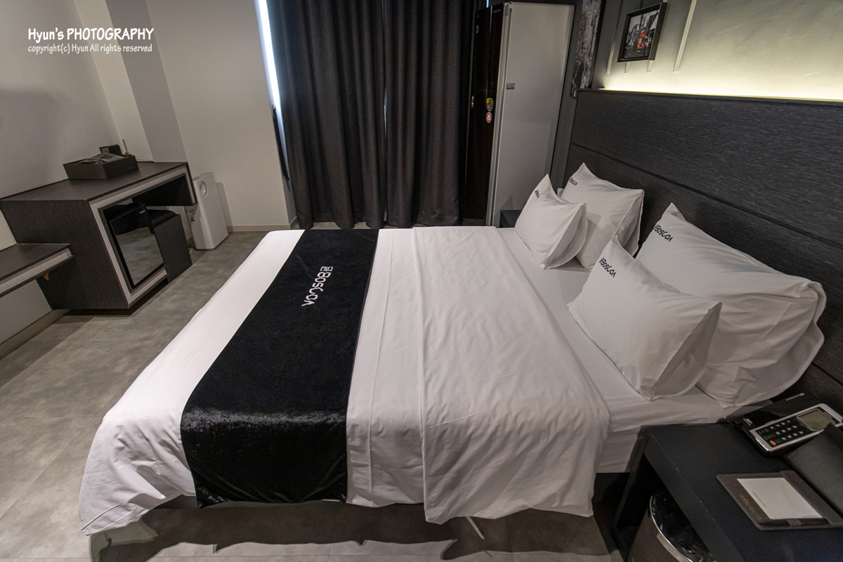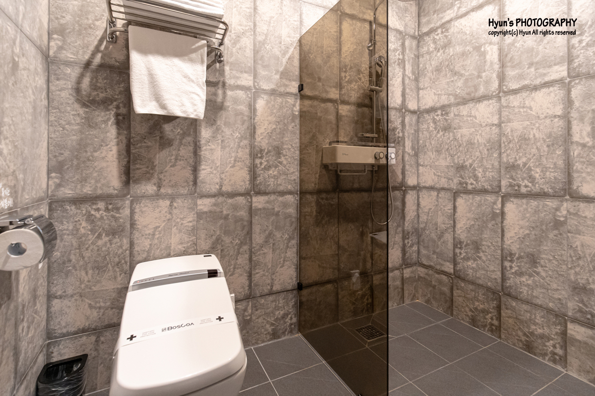 더블베드 침대가 놓여져 있는 디럭스 더블룸은 침대 쿠션도 매우 푹신하고 좋아 그동안 여행에 지쳤던 몸을 편안하게 해줬던 것 같았고요. 침대 아래 창가쪽에는 공기청정기도 별도로 구비가 되어 있어 왠지 실내 공기도 쾌적한 기분이 드는 것 같았습니다. 그리고 욕실은 따로 있지만, 세면대는 바깥으로 나와 있는 건식 타입으로 되어 있는 것이 특징이더군요.