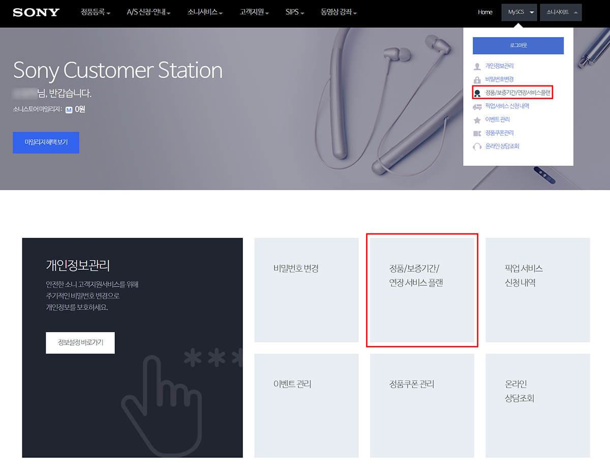 물론 공짜로 연장이 되는 것은 아니고요. 별도의 추가지출이 필요한데, 구체적인 비용은 있다가 다시 언급하기로 하고, 일단 연장서비스 플랜에 가입하기 위한 조건은 사전에 정품등록이 되어 있어야 하고, 반드시 기존 1년 보증기간이 지나기 전에 가입을 해야 한다는 것입니다. 가입 방법은 소니 고객센터 전화를 통해서도 가능하고 직접 소니 홈페이지로 들어가 로그인을 한 뒤, 다시 정품등록 메뉴에서 '연장서비스 플랜(ESP)'을 통해서도 가입이 가능합니다.