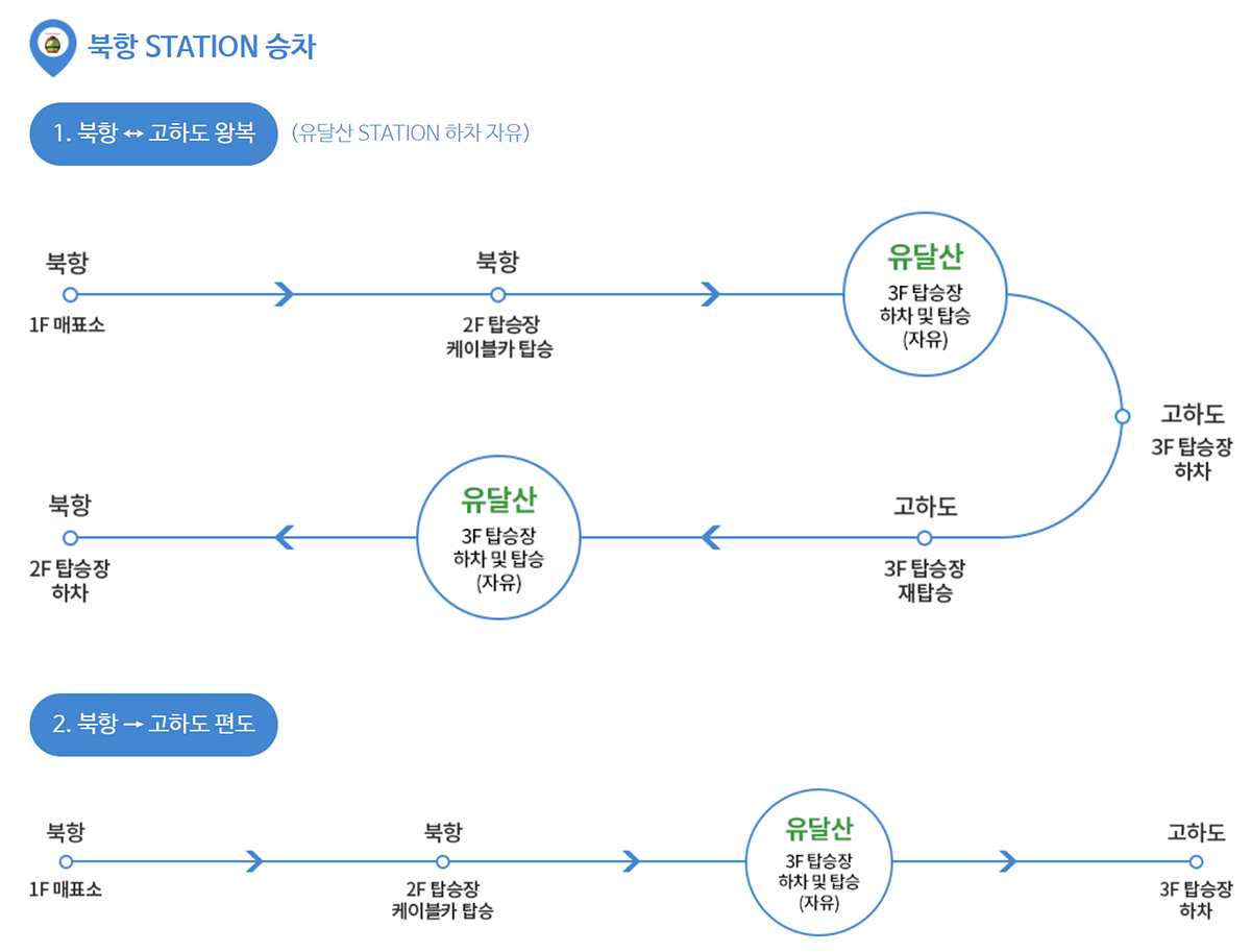 목포 해상케이블카는 북항, 고하도, 유달산 승강장 세 곳에서 어느 곳에서든 자유롭게 승하차를 할 수 있는데요. 대부분은 북항승강장이나 고하도 승강장을 많이 이용하는 편이고, 중간 유달산 승강장은 경유지로 내려도 되고 안내려도 되는데, 왠만하면 내려서 유달산 주변의 풍경도 함께 만끽하는 것을 추천 드립니다. 그리고 북항에서 타면 고하도에서는 반드시 하차를 해야 되고, 고하도에서 타면 북항에서 반드시 하차를 해야 합니다.