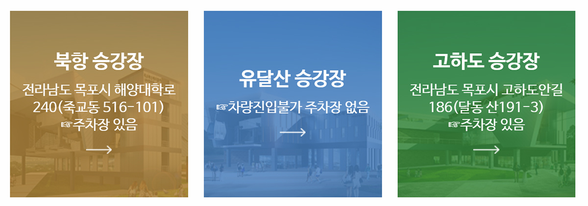 북항승강장과 고하도 승강장은 차량진입이 가능하지만, 유달산 승강장은 차량으로 갈 수 없고, 북항 및 고하도 승강장 주차장 주차요금은 케이블카 이용시 3시간까지는 무료이며, 추가 1시간에 1천원, 일 최대 1~2만원 입니다.