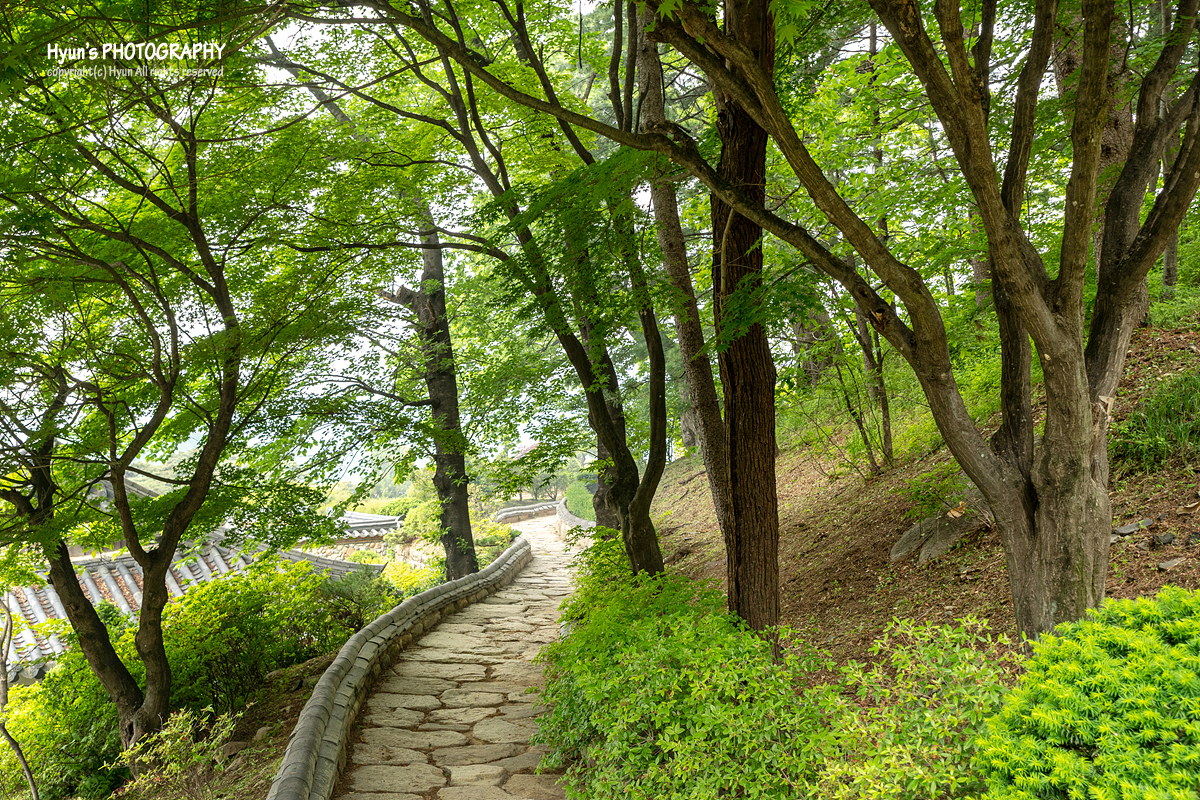 무량수전 앞마당에서 부석이 있는 오른쪽으로 난 길을 따라 내려가게 되면 관음전으로 가는 돌길이 나오게 됩니다. 여러번 방문을 했던 부석사였지만, 이 길을 걸어보는 건 처음이었어요. 초여름이라 그런지 주변의 숲과 나무들이 한창 초록빛을 띄고 있는 모습입니다.