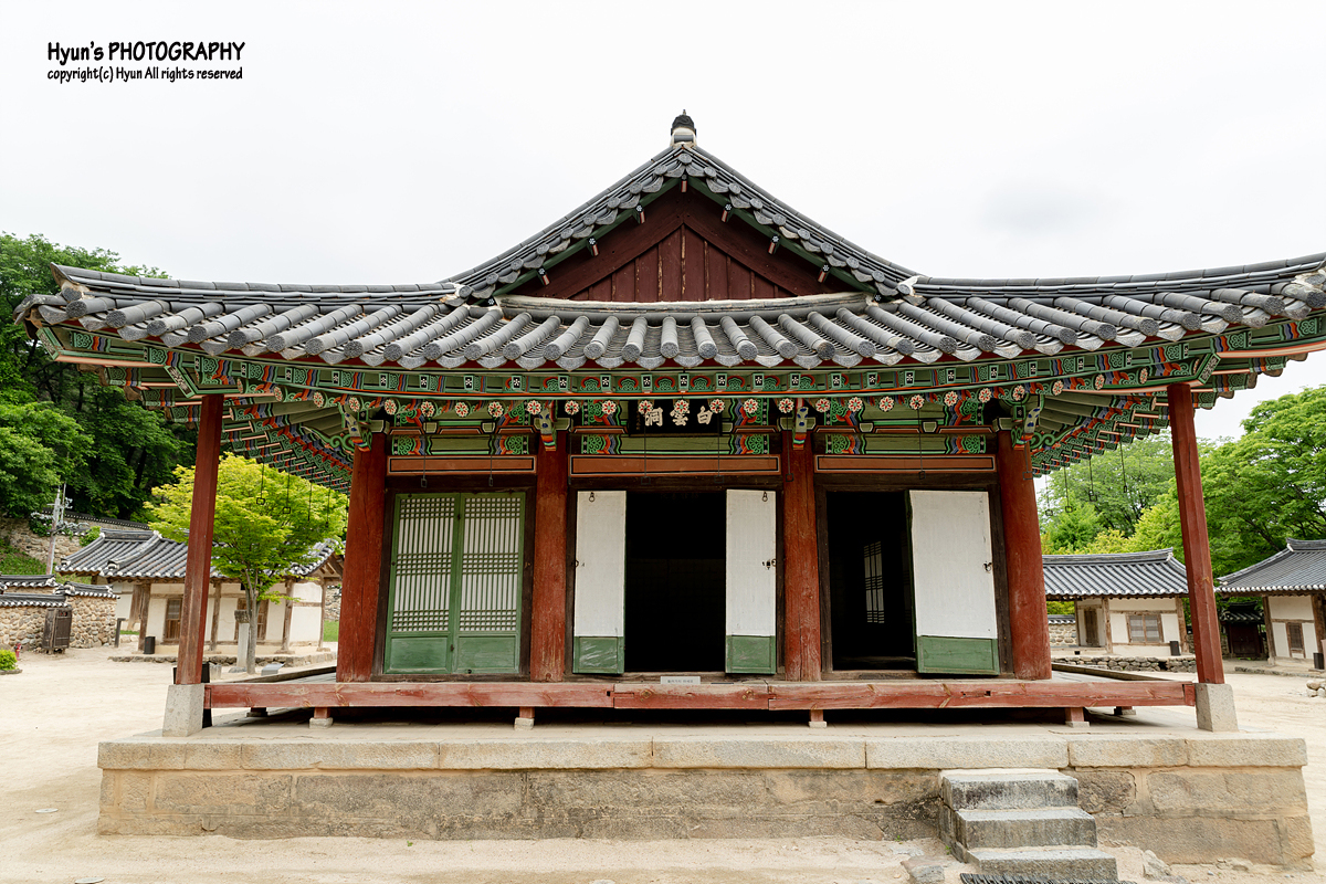 명륜당을 중심으로 주변에는 지락재와 학구재, 일신재와 직방재라는 학습 공간과 함께 유생들이 거처하는 공간이 마련되어 있고, 또 한쪽에는 제사를 지내는 제향공간인 문성공표와 전사청, 영정각 건물도 따로 세워져 있습니다.