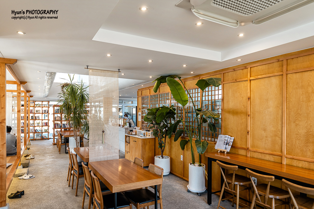 카페 내부가 그리 크거나 넓진 않지만, 테이블이 여럿 자리잡고 있는데, 일부는 입식 테이블이 마련되어 있는 반면, 창가 쪽으로는 좌식 테이블이 준비되어 있기도 합니다. 내부 인테리어 분위기 때문인지 실제 입식 테이블 보다는 좌식 테이블의 인기가 더 많은 편이라고 해요. 그래서 항상 가보면 좌식 테이블 쪽이 먼저 자리가 차는 것 같았습니다.