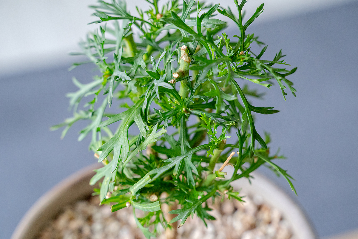 사실 굳이 가지치기를 하지 않은 상태로 여름을 보내도 상관없지만, 목마가렛 특성상 성장 속도가 빠르고 잎이 마치 거미줄처럼 얽히고 섥히며 자라기 때문에 무성하게 자라면 통풍이 원할하지 않게 되지요. 이는 병충해의 원인이 되기도 합니다. 안그래도 벌레가 꼬이기 쉬운 베란다에서의 습한 여름을 잘 보내기 위해서는 과감한 가지치기를 해주는 것이 좋은데요.