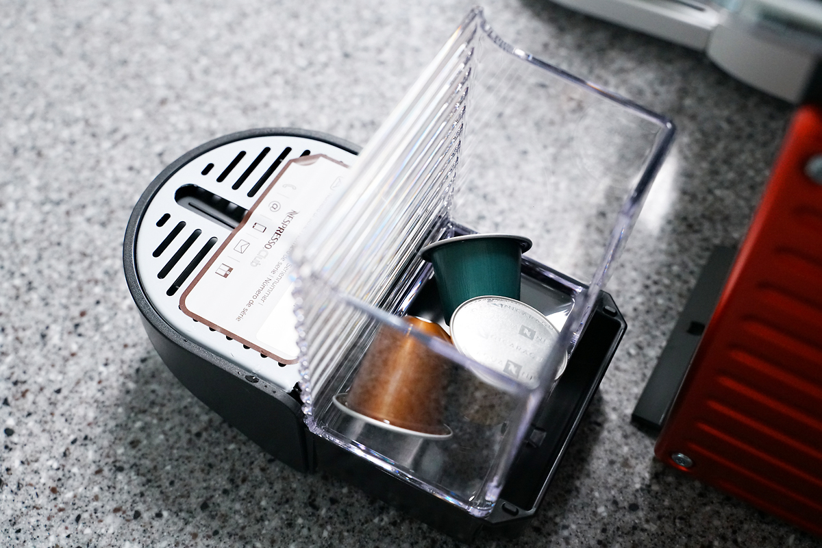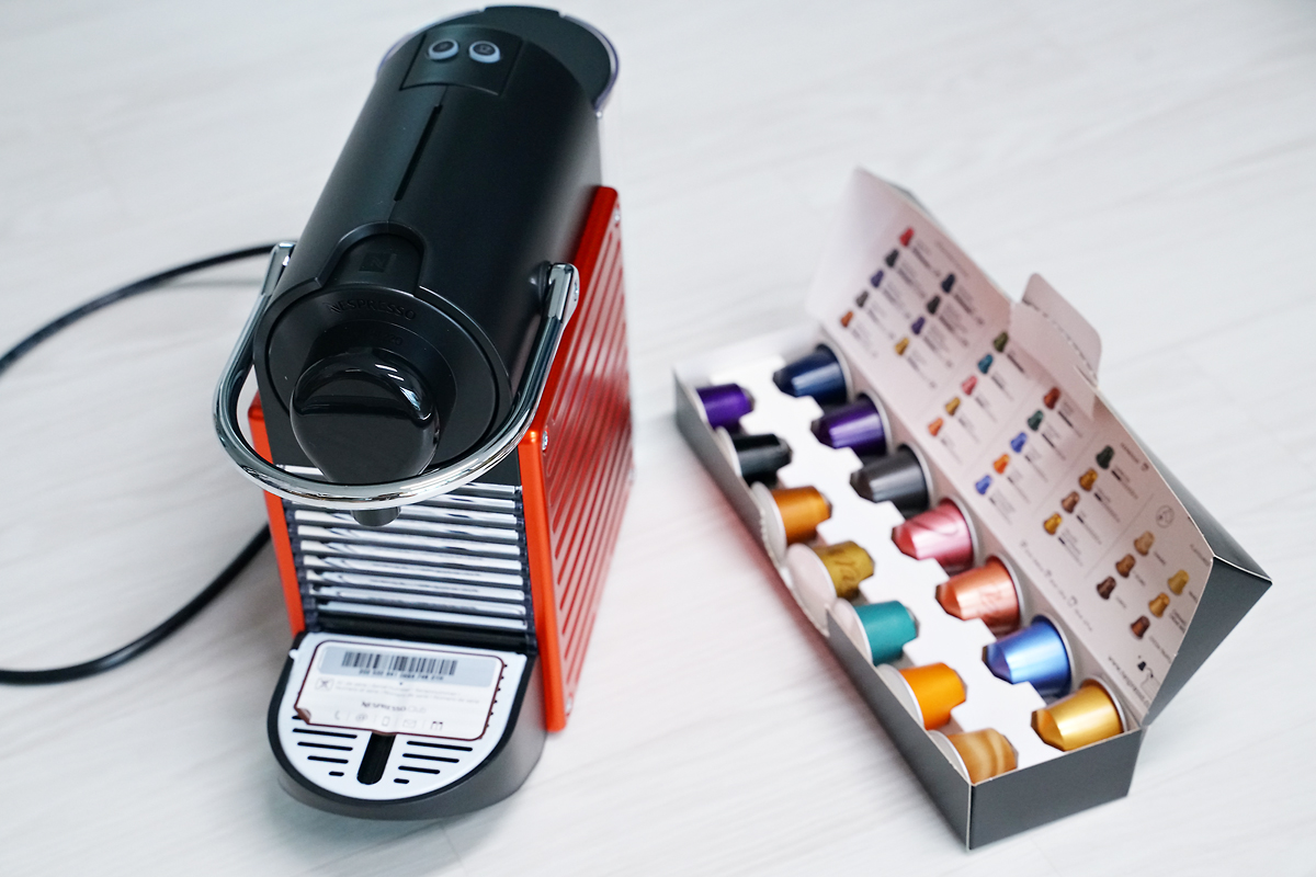 캡슐 커피머신 대부분이 그러하듯 제품 크기는 꽤 작고 귀여운 모습입니다. 주방에 놓아도 자리 차지를 그리 하지 않아서 좋을 것 같더라고요. 함께 샘플로 제공된 커피 캡슐은 다양한 맛을 가진 14가지 종류로 구성되어 있고, 샘플 몇몇을 먹어보고 마음에 드는 캡슐이 있으면 따로 네스프레소에서 주문해서 드시면 됩니다. 요즘은 네스프레소 호환 캡슐도 굉장히 많은 편이라 캡슐 선택은 무궁무진 한 것 같더라군요.