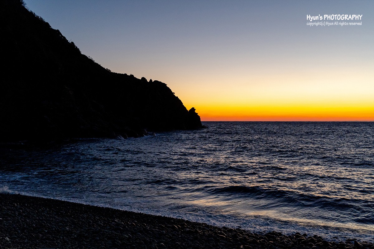 지금은 추운 겨울철이어서 스노클링은 할 수 없지만, 대신 이렇게 해가 지는 저녁 시간대에 근사한 일몰을 마주할 수 있는 일몰 맛집으로 바뀌는 곳이 됩니다. 섬 지역의 특성상 울릉도 동쪽에는 당연히 일출 명소가 있을테고, 서쪽 해변엔 이렇게 일몰 명소가 군데군데 있습니다.