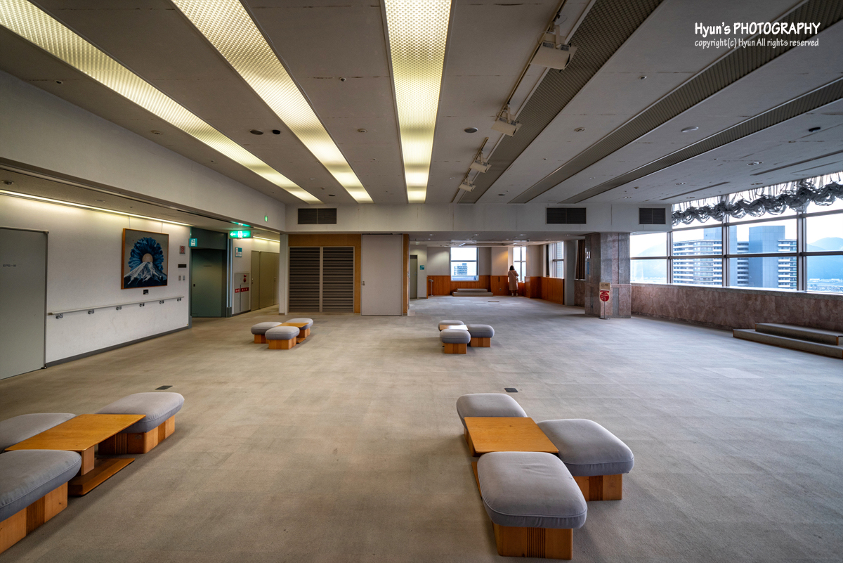 이곳이 시즈오카 현청 전망대입니다. 계절 및 시기에 따라 관람시간이 차이가 있을 수도 있는데, 제가 갔을 시기에는 18:00까지 관람이 가능했습니다. 물론 무료로 올라갈 수 있고요. 구름 없는 맑은 날에는 후지산을 선명하게 볼 수 있는 전망대이넫, 이날 비가 잠시 내린 직후라 구름이 조금 끼어 있어 후지산을 볼 수 있을지 살짝 걱정이 되기도 했습니다. 참고로 엘리베이터를 타고 전망대까지 올라가면, 꽤 넓은 공간에 360도 파노라마로 전망을 볼 수 있도록 되어 있어요.