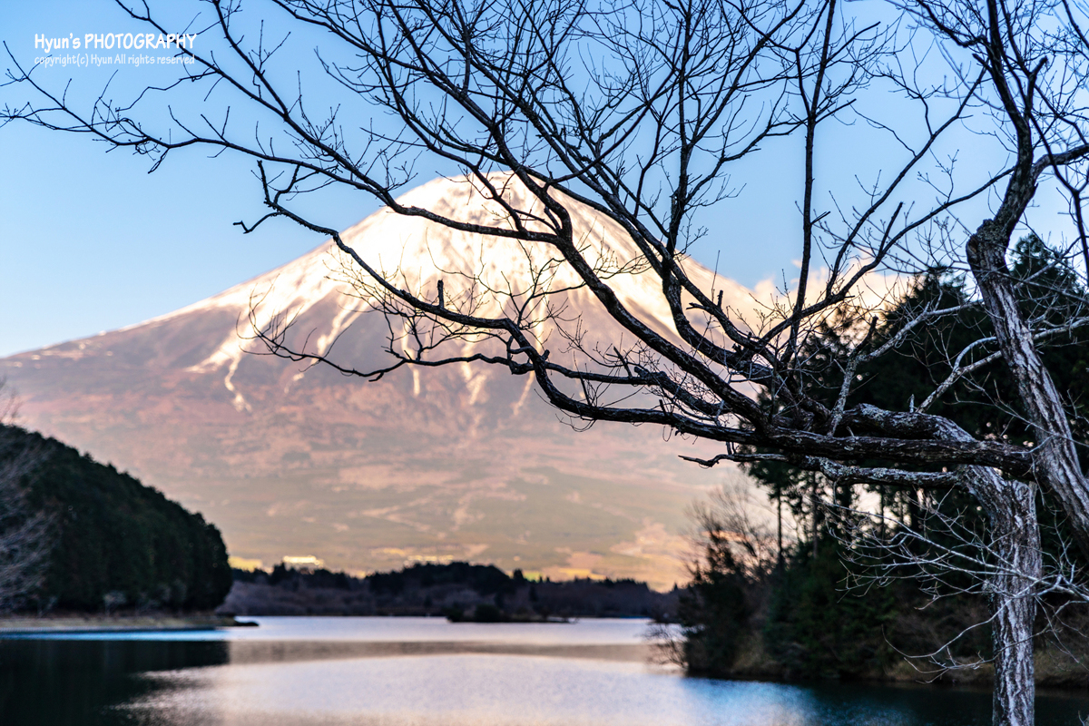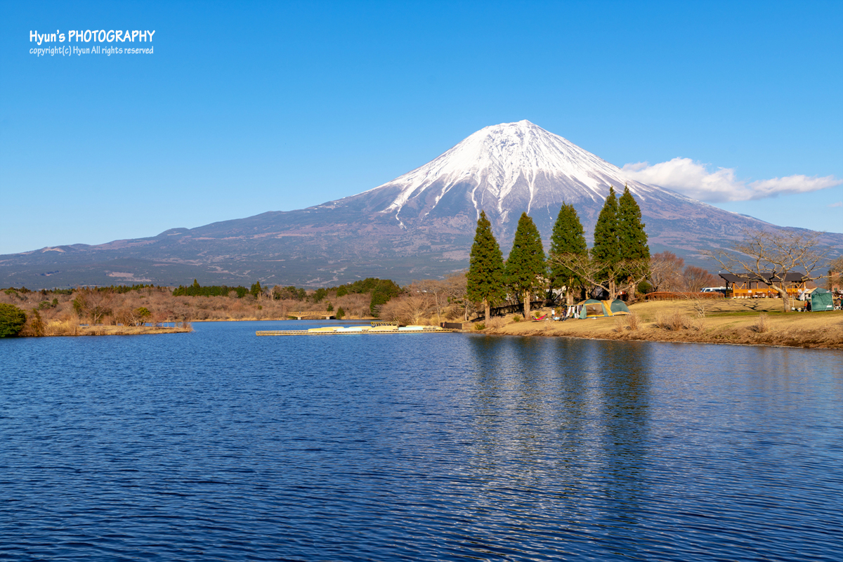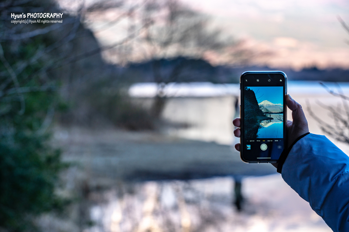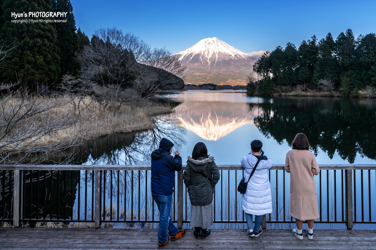 이날은 오전에도 그랬고, 오후까지 티없이 맑은 하늘을 보여줘서 그런지 맑고 깨끗한 후지산 풍경을 만날 수 있었습니다. 운이 좋았던 것이지요. 바람도 잔잔한 편이라 맑고 투명한 타누키 호수 위에 비치는 후지산 반영 사진도 꽤 멋지더라고요.