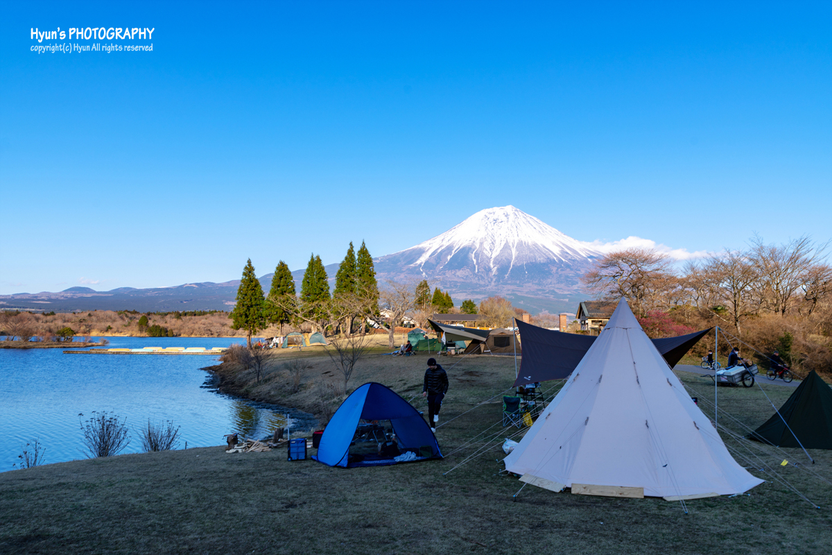 타누키 호수 주변의 주차장은 무료주차장이 있어 주차는 한결 쉬웠습니다. 특히 타누키 호수 주변은 캠핑장 시설이 잘 되어 있어 현지인들의 캠핑 명소로도 많이 알려진 곳이라고 해요. 암튼 호숫가에 도착한 시간이 이제 오후 느즈막한 시간이라 그에 따라 햇빛에 반사되는 후지산의 풍경과 색감도 수시로 변하는 것 같았습니다.