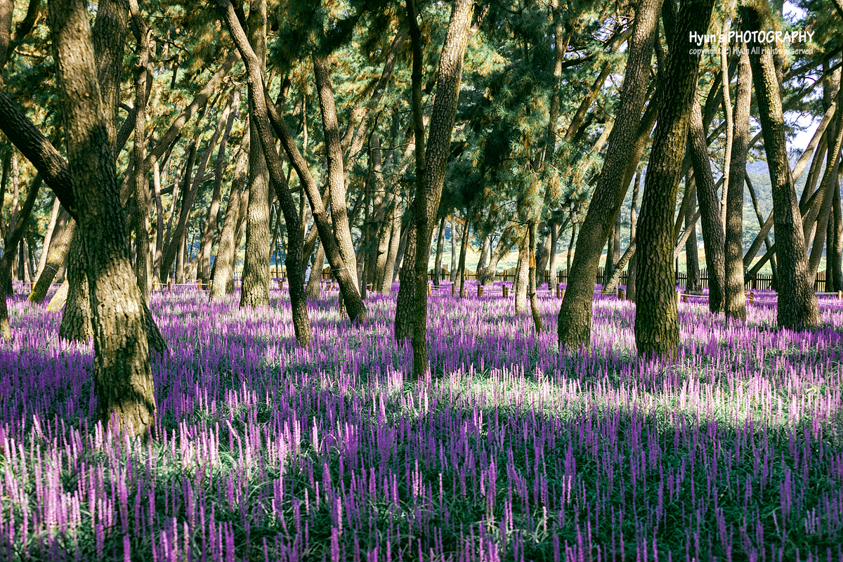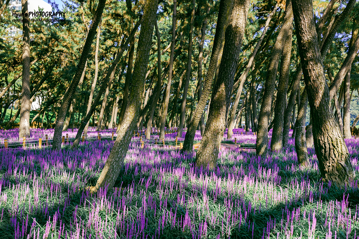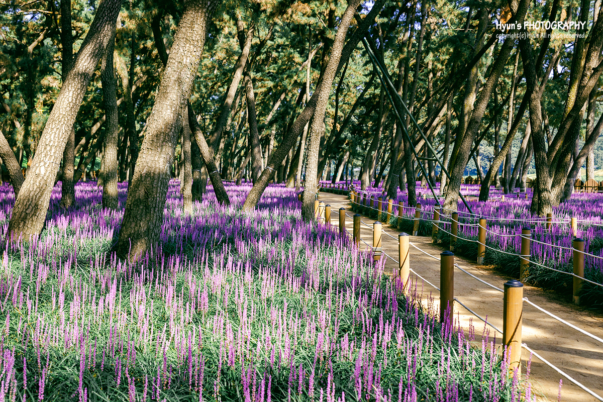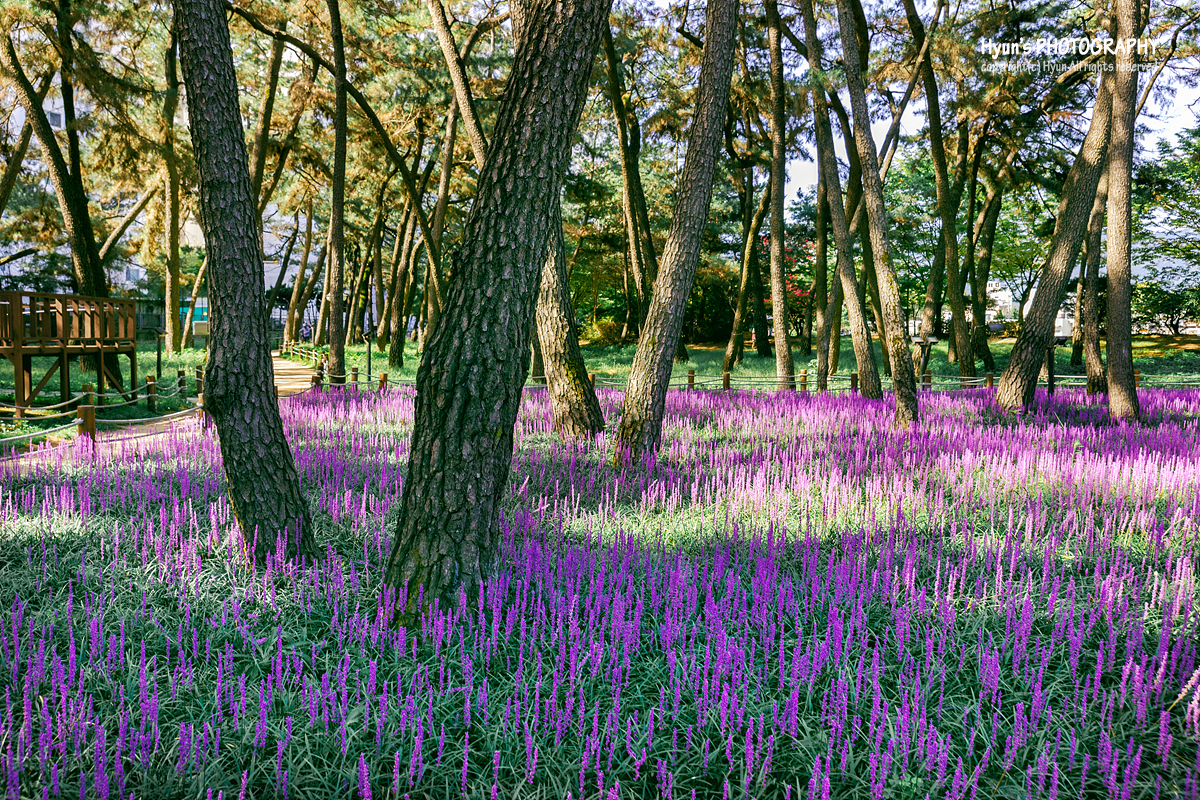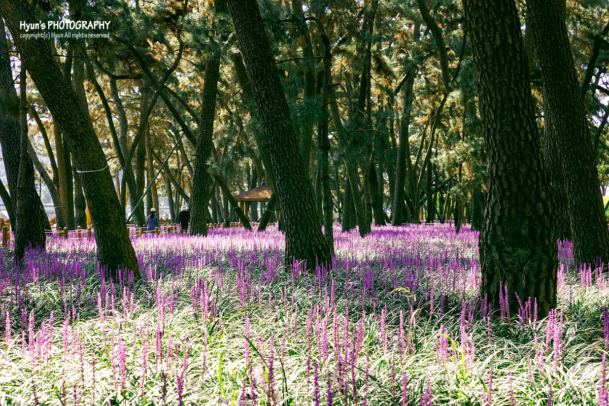 특히 이곳은 소나무 숲이 꽤 무성하게 자라고 있어서인지 그늘이 많아서 한낮에도 제법 선선한 그늘 아래서 산책이 가능한 곳이라 괜찮은 것 같더라고요. 특히 솔숲 사이로 비치는 햇빛 아래 은은한 보라빛 감성을 더해주는 맥문동 군락지의 풍경이 더 예뻐 보이기도 했습니다.