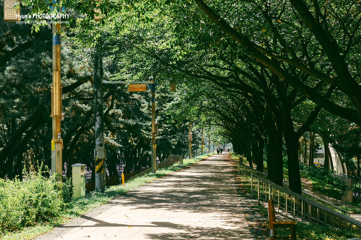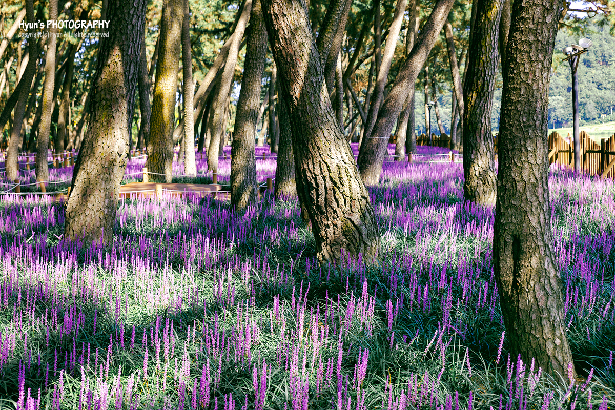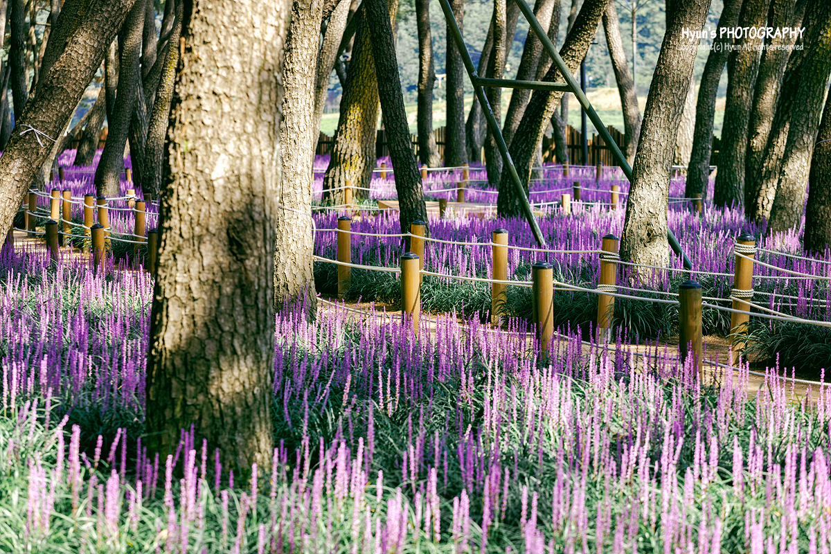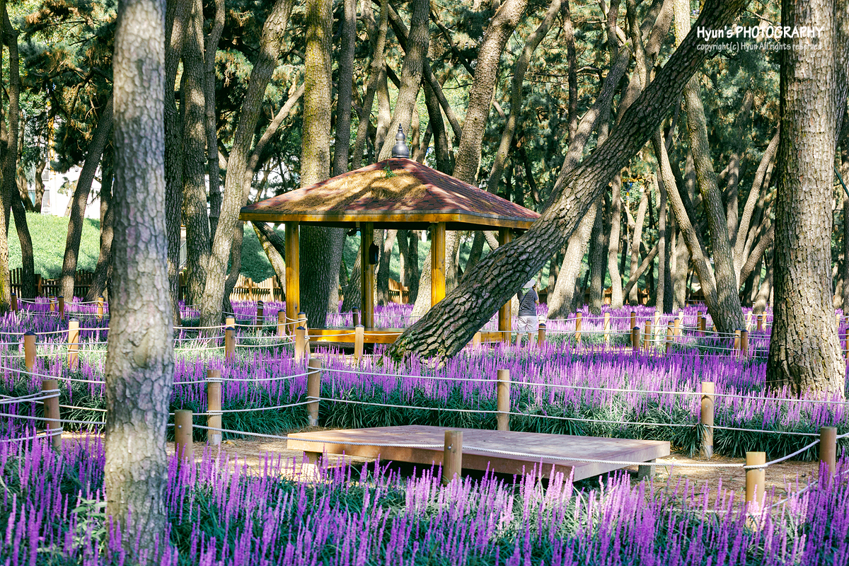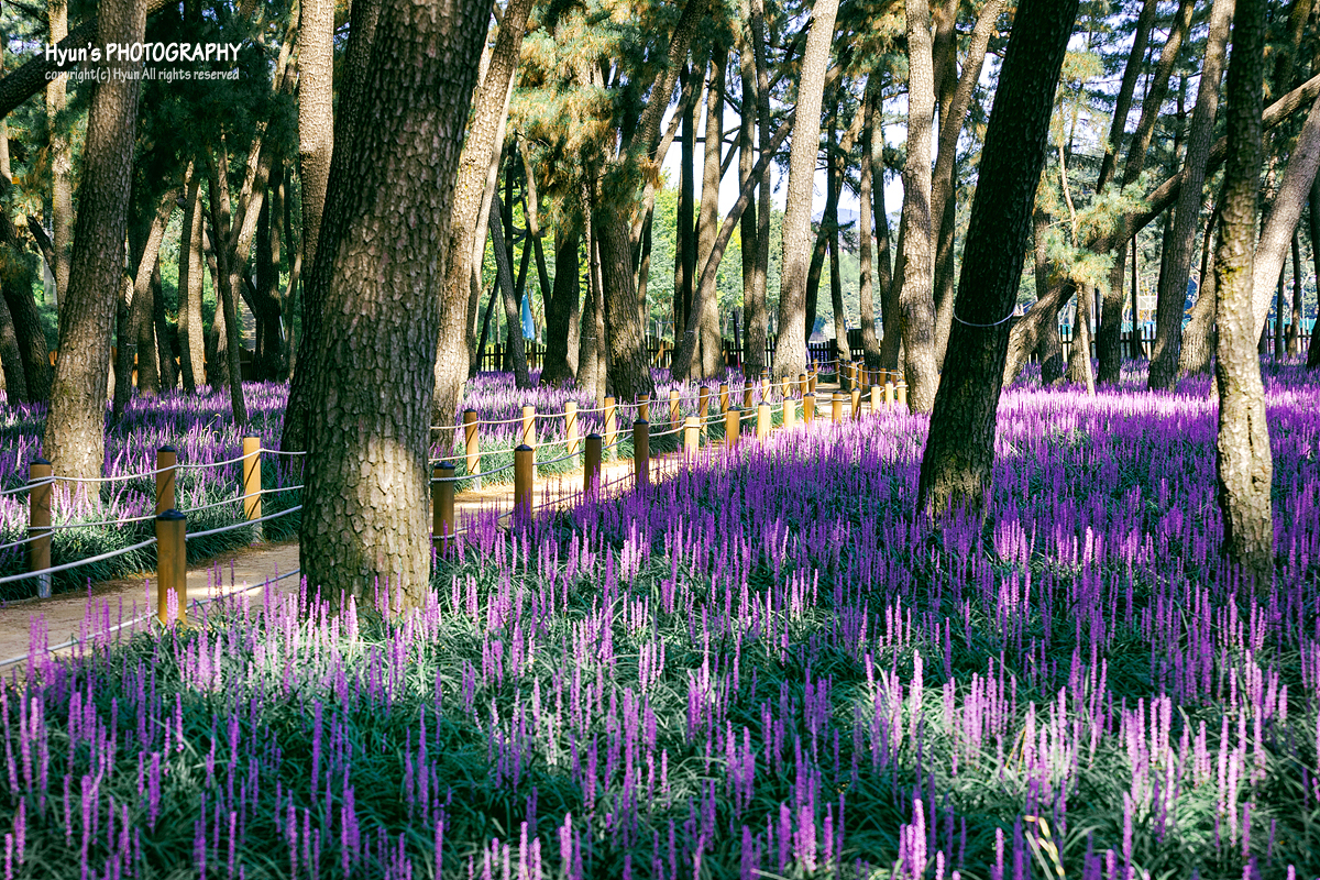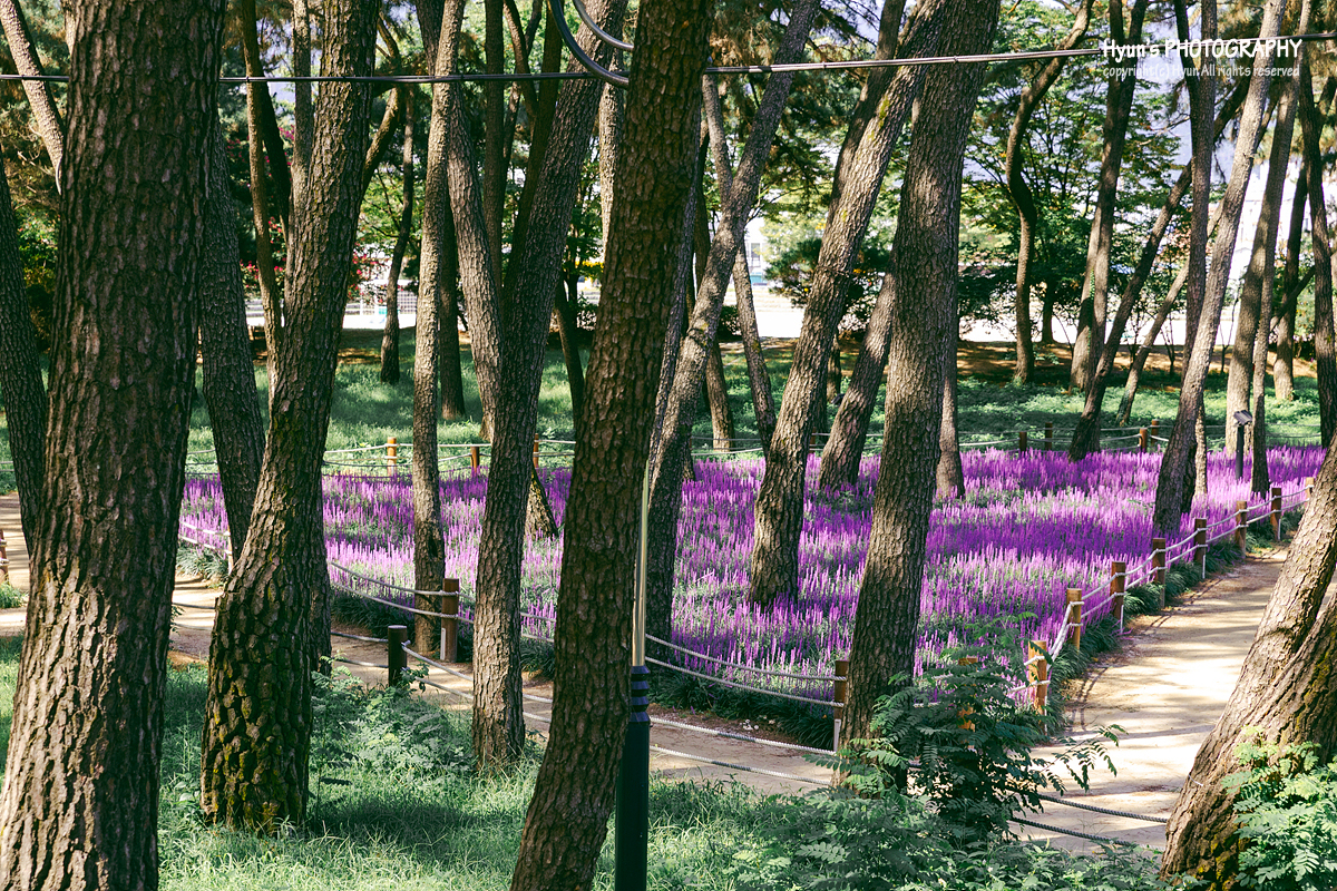 특히 이곳은 소나무 숲이 꽤 무성하게 자라고 있어서인지 그늘이 많아서 한낮에도 제법 선선한 그늘 아래서 산책이 가능한 곳이라 괜찮은 것 같더라고요. 특히 솔숲 사이로 비치는 햇빛 아래 은은한 보라빛 감성을 더해주는 맥문동 군락지의 풍경이 더 예뻐 보이기도 했습니다.