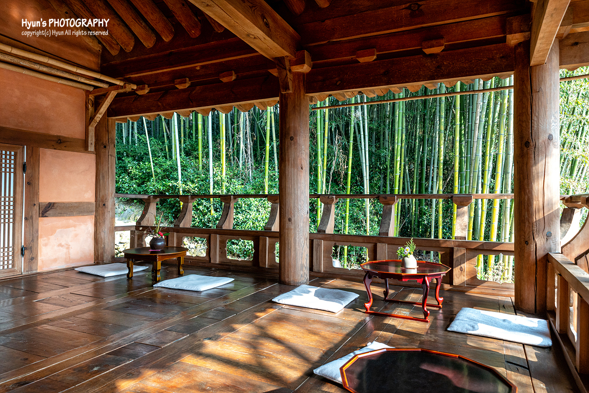 마당의 장독대를 지나 대나무숲길을 지나면, 따로 마련되어 있는 별채와 호서정 건물을 만나게 되는데요. 별채 마루에도 작은 소반이 마련되어 있어 이곳에 자리를 잡고 시간을 보내는 것도 꽤 좋을 것 같습니다. 바로 맞은편에 대나무숲이 있기도 하니 더운 여름철에는 꽤 시원한 기분을 느낄 수도 있을 것 같네요.