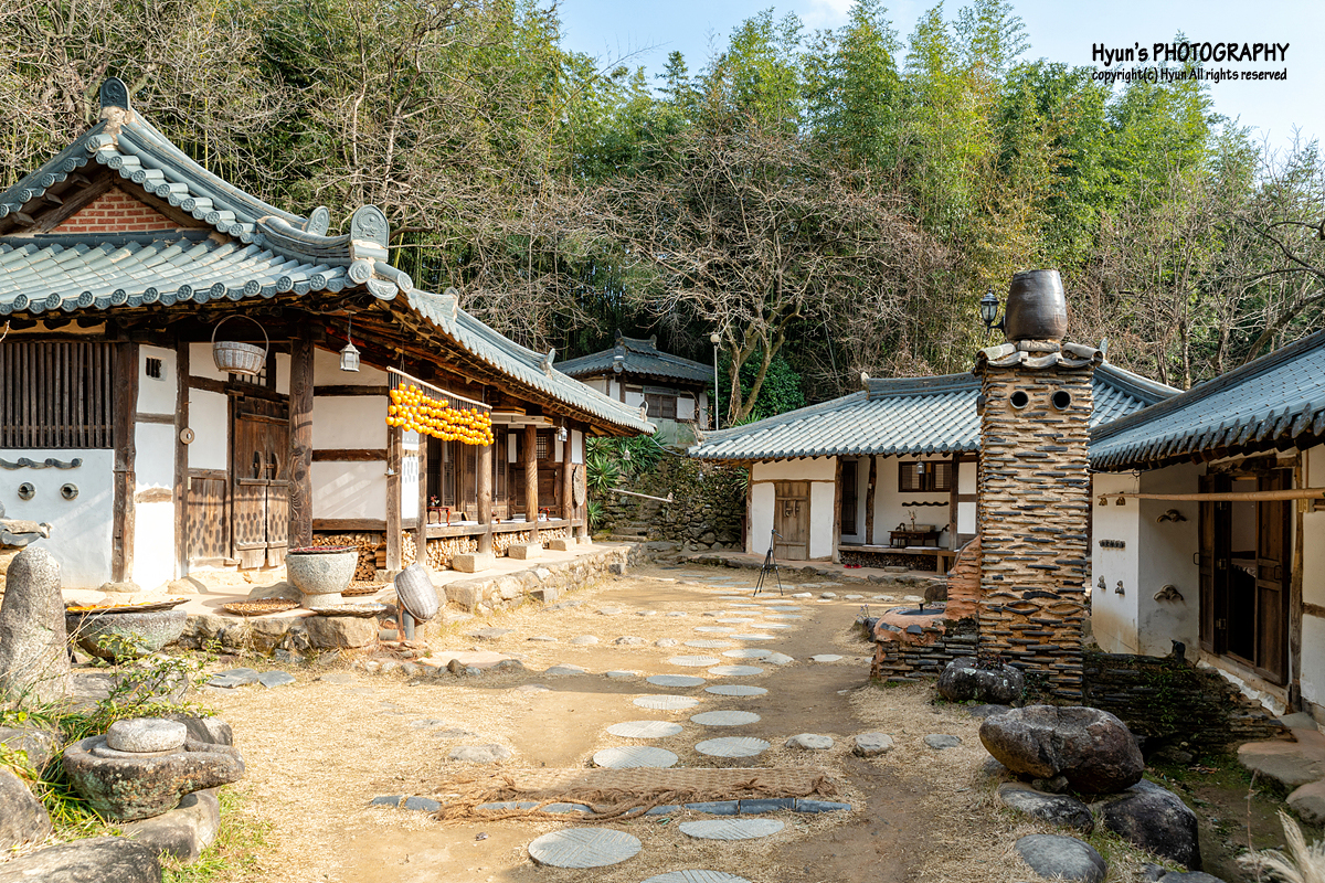 관리동에서 입장료를 먼저 낸 뒤, 주문은 있다가 다시 하기로 하고, 먼저 쌍산재 고택 내부를 한 번 둘러보기로 했습니다. 마치 시골 할머니 댁을 방문한 느낌처럼 꽤 푸근한 느낌이 들더라고요. 딱 옛날 시골집의 분위기가 그대로 나는 듯했습니다. 안채와 사랑채가 서로 마주보고 있는 구조이며, 왼쪽으로는 대나무숲길을 따라 올라가면 별채와 서당채가 나오게 됩니다.