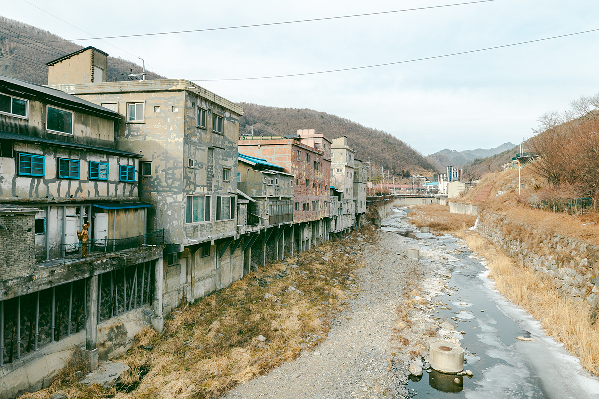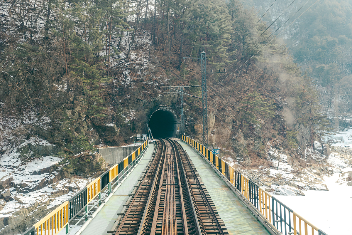 승부역을 지나서는 이제 종점인 철얌역까지 중간 정차역 없이 계속 달리게 되는데요. 이제 강원도 지역으로 들어서면서부터 창밖으로 보이는 산세의 풍경이 더욱 험준해지며, 또한 옛 탄광촌의 풍경이 스쳐 지나가기도 합니다.