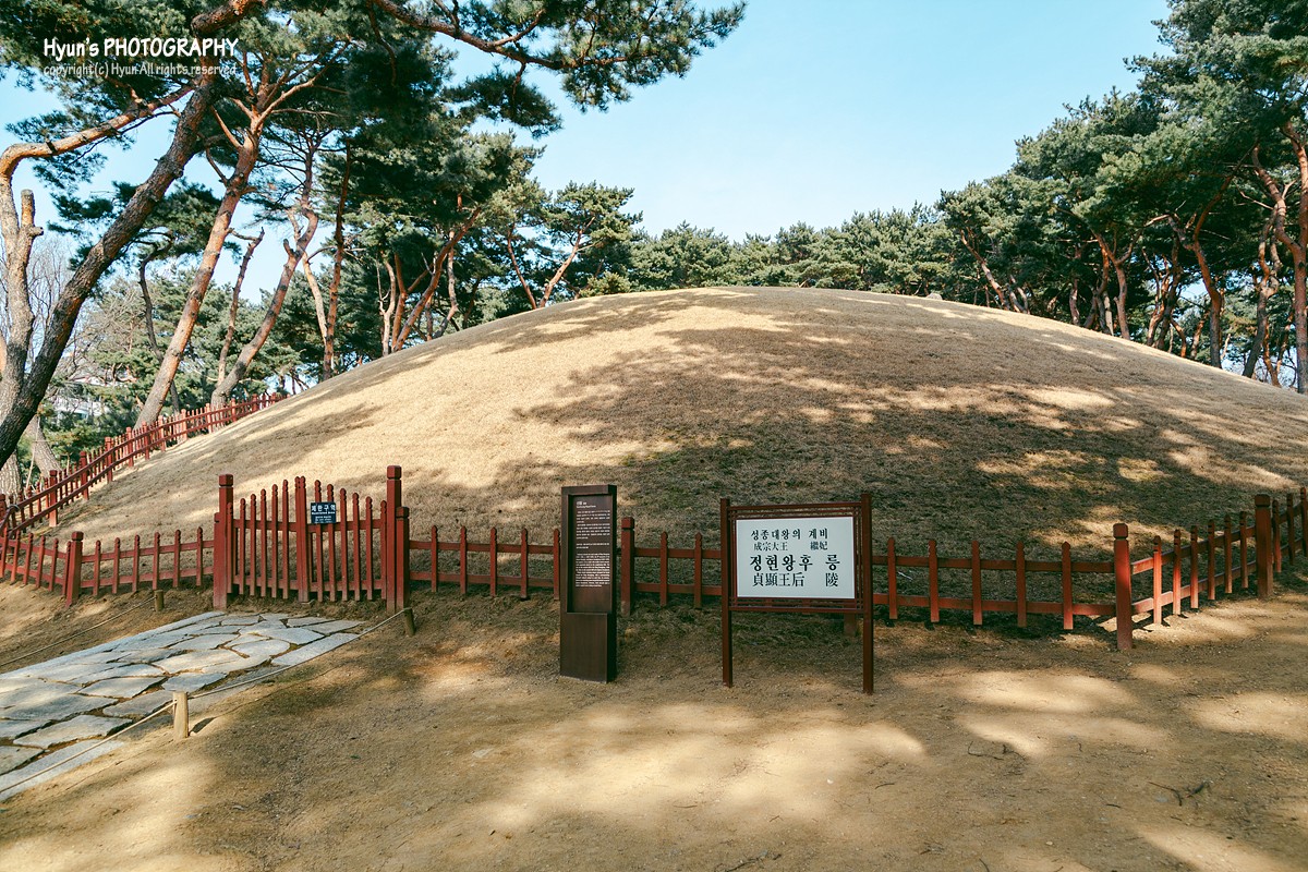 성종은 알다시피 세종 이후 조선왕조의 기틀을 세운 왕이기도 하며, 비교적 꽤 많은 업적을 남긴 왕이기도 하지요. 특히 정현왕후는 아래에서 소개할 정릉의 주인인 중종을 낳은 왕비이기도 합니다. 따라서 선정릉은 아버지 성종, 어머니 정현왕후, 아들 중종까지 세 가족이 함께 묻혀 있는 곳이 되었네요.