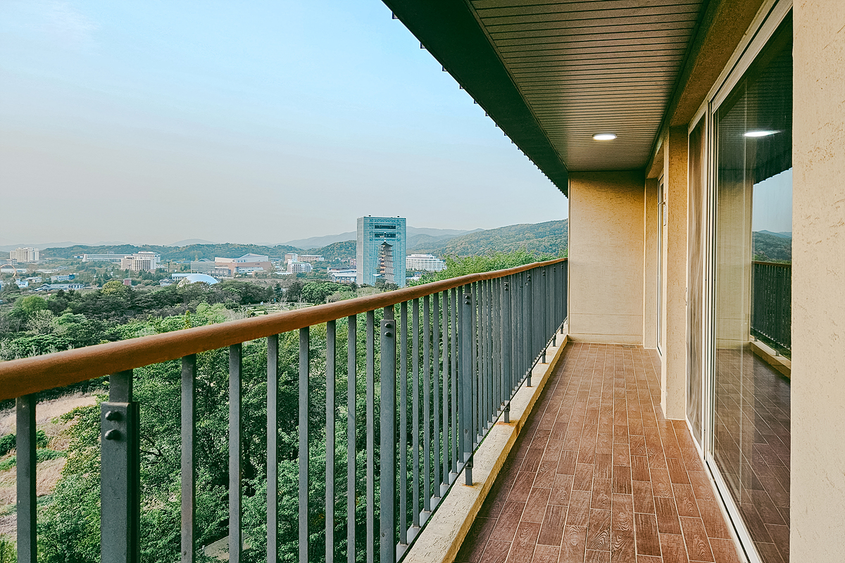테라스 쪽에서 바라본 뷰입니다. 테라스 맞은편에 보문호수와 함께 경주월드 놀이기구가 바로 보이네요. 그만큼 보문호수 및 경주월드와도 꽤 가까운 곳에 있어요.