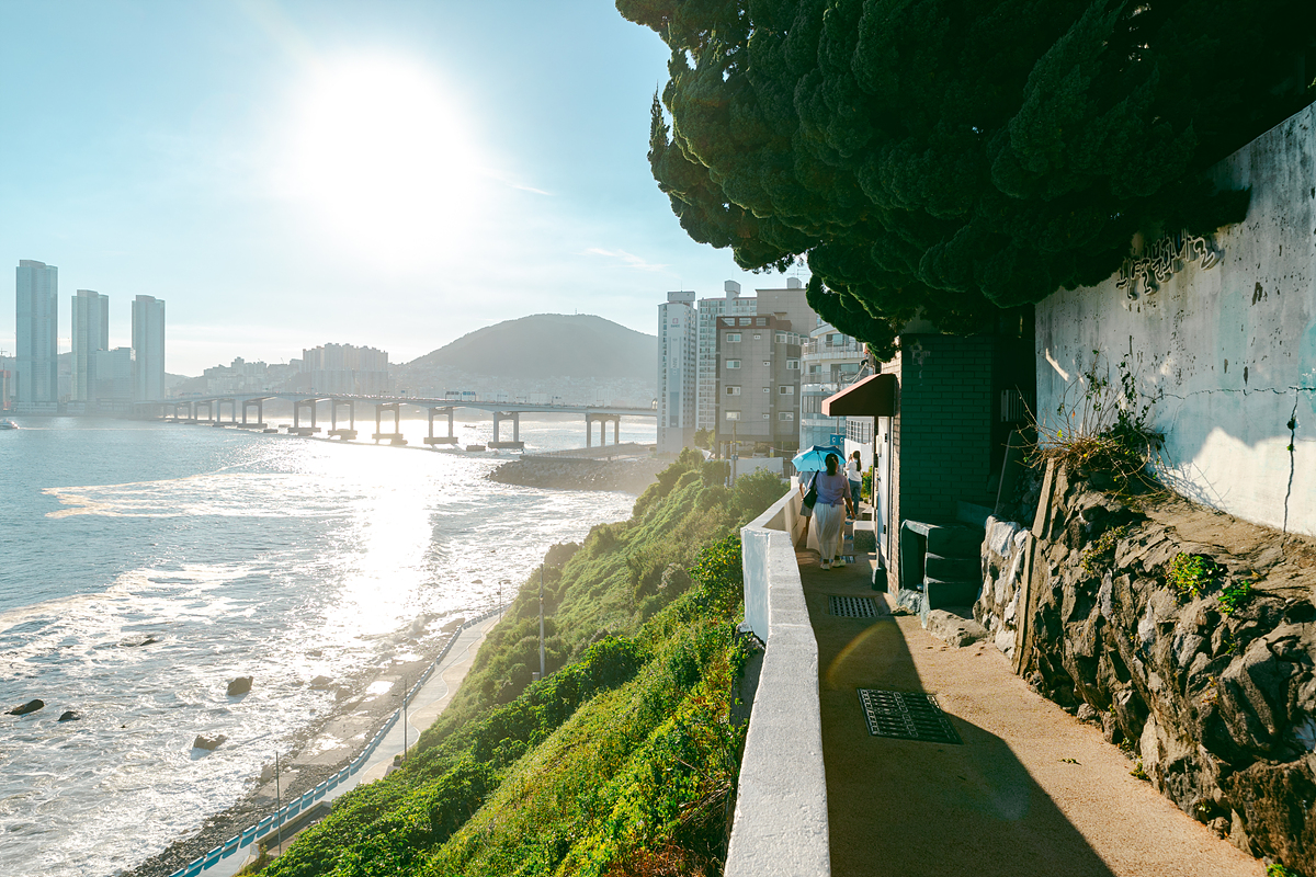 아까 출입구가 두 곳이 있다고 말씀 드렸는데, 도로가가 아닌 흰여울 문화마을 골목길 쪽에서는 아래에서 윗쪽 방향으로 입구가 연결되어 있습니다.