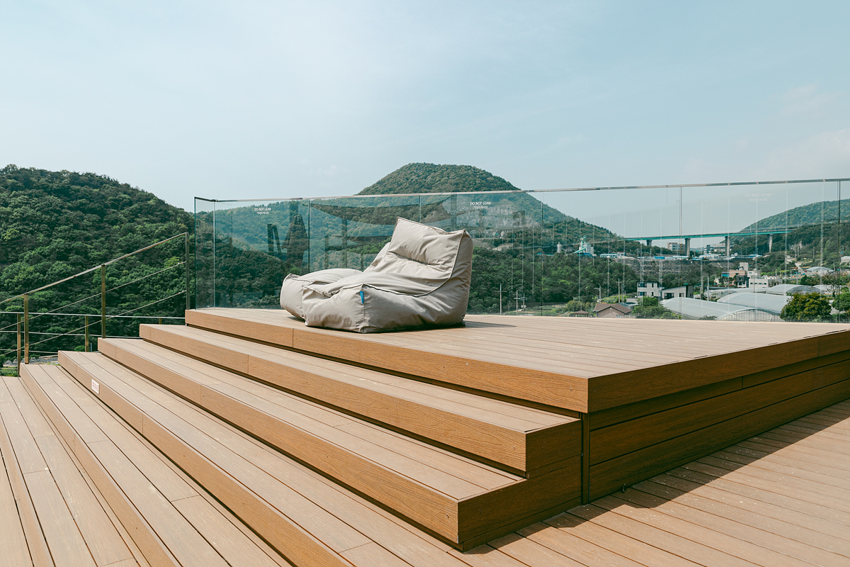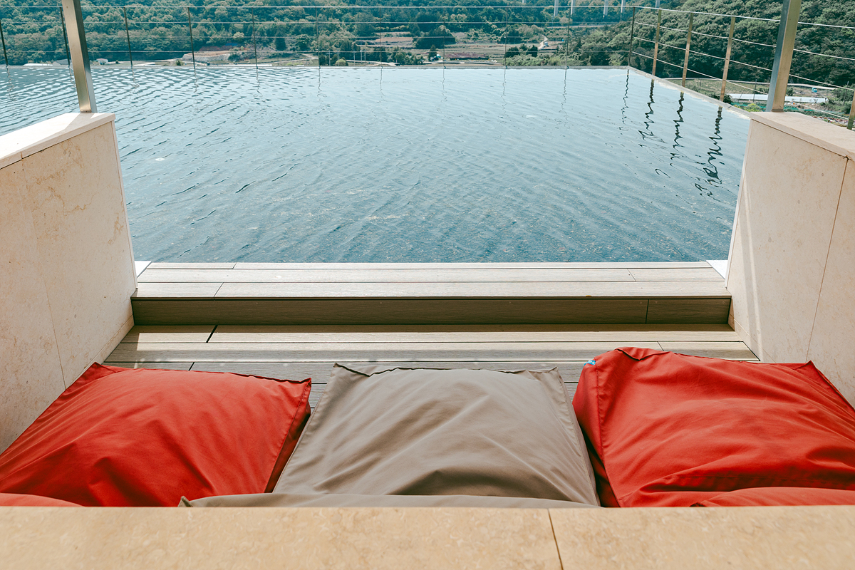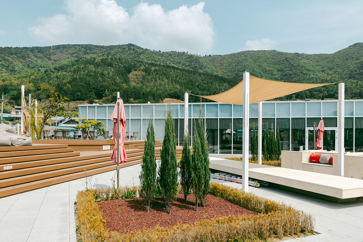 그 중에서도 루프탑 공간에서 가장 인기가 많을 프라이빗한 공간들도 보였습니다. 좌우로 칸막이가 있고, 위로는 차양막이 쳐져 있으며, 정면으로는 물을 바라볼 수 있는 곳이기도 해서 커플들에게 꽤나 인기가 좋았던 것 같았습니다. 암튼 여수여행을 하며 비오는날이거나 실내여행지를 찾는다면, 이곳 여수 녹테마레 미디어아트 전시관을 찾아보는 것도 꽤나 괜찮을 것 같네요.