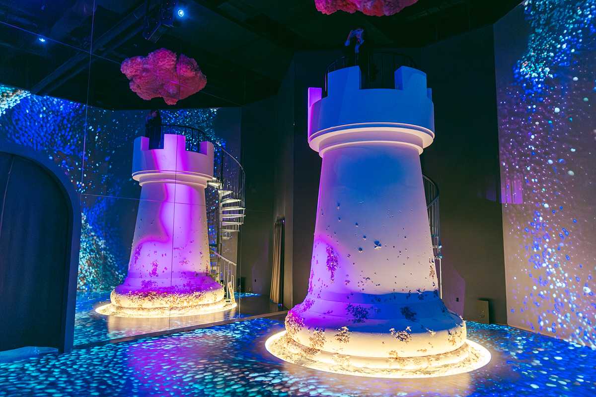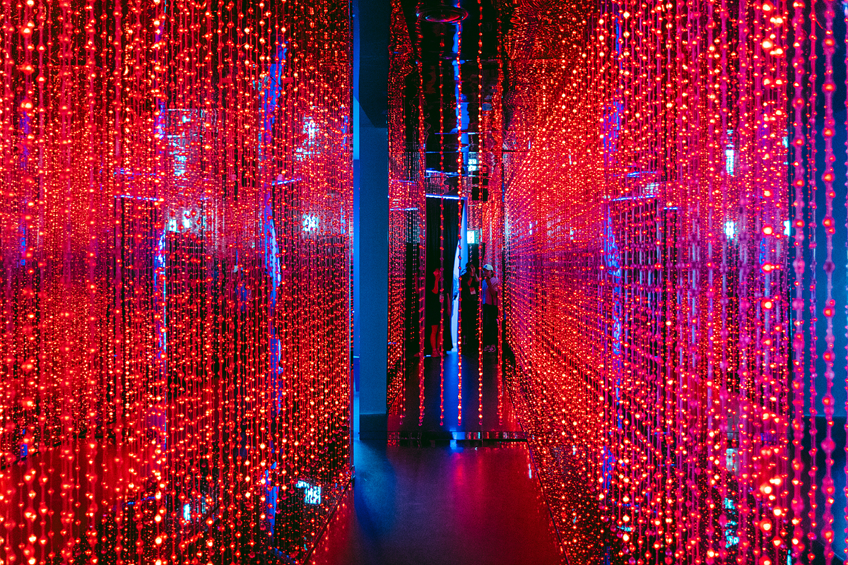 1층 미디어아트 전시관 안으로 들어가니 입구에서부터 화려한 조명들이 펼쳐진 모습입니다. 입장료가 조금 비싸긴 해도 군데군데 사진을 찍으면 예쁘게 나올만한 포토존들이 꽤 많이 있더라고요.