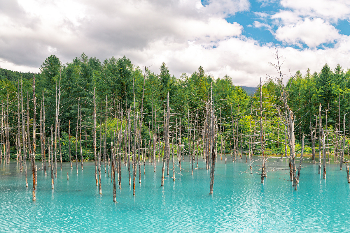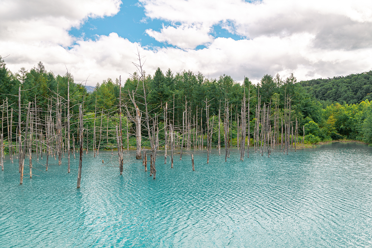 비에이 청의 호수는 사실 사진가들에게 먼저 알려진 명소입니다. 일본어로 '아오이이케'라 불리는 이곳은 원래부터 호수가 있던 자리는 아니었지만, 주변 사방댐 공사로 인해 자연스레 물이 고이게 되면서 생겨난 호수라고 합니다. 거기에 인근 토양이 석회질 성분이 많아 물빛이 오묘한 푸른 빛을 띠게 되어 신비한 호수로 알려지기 시작한 곳이지요.