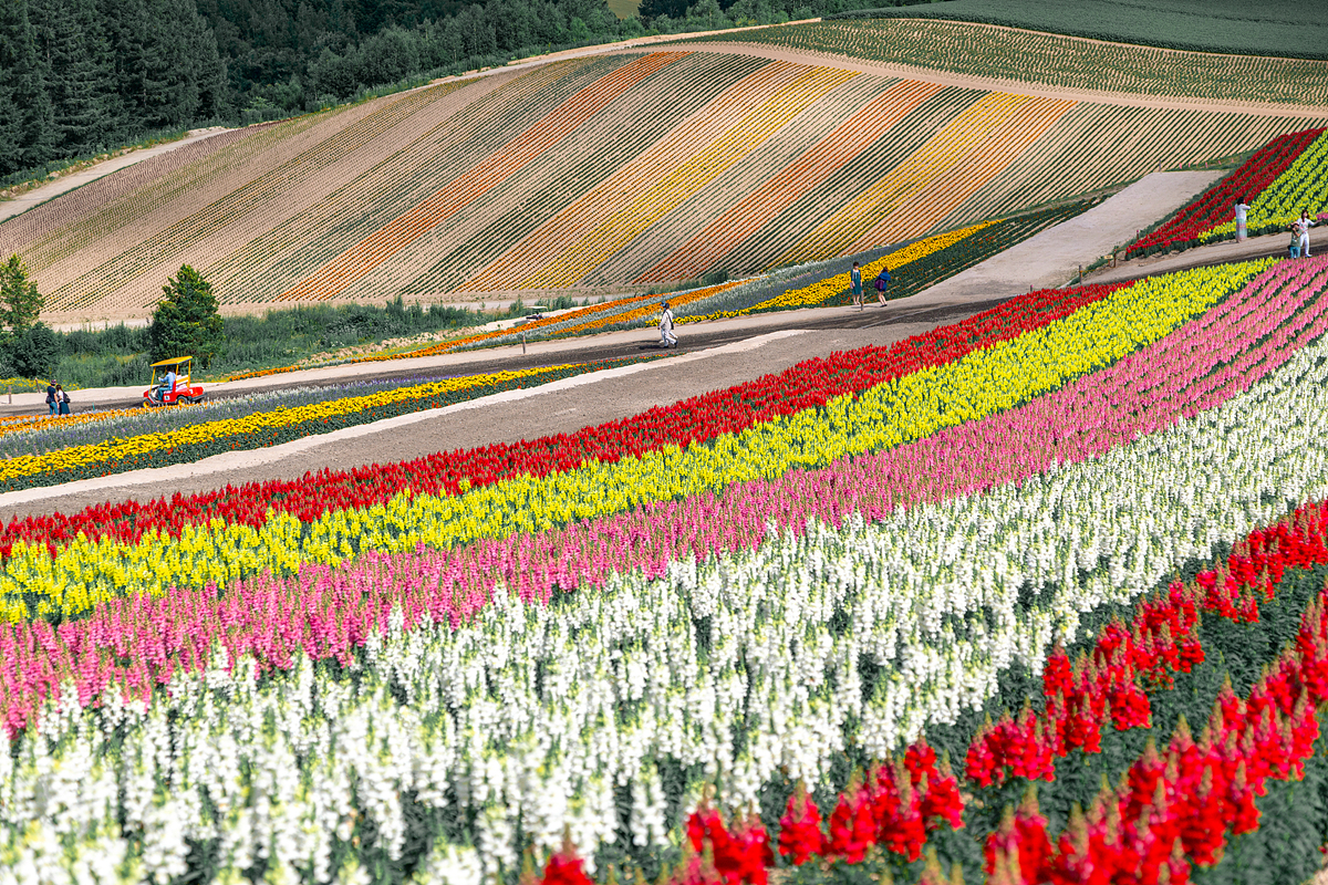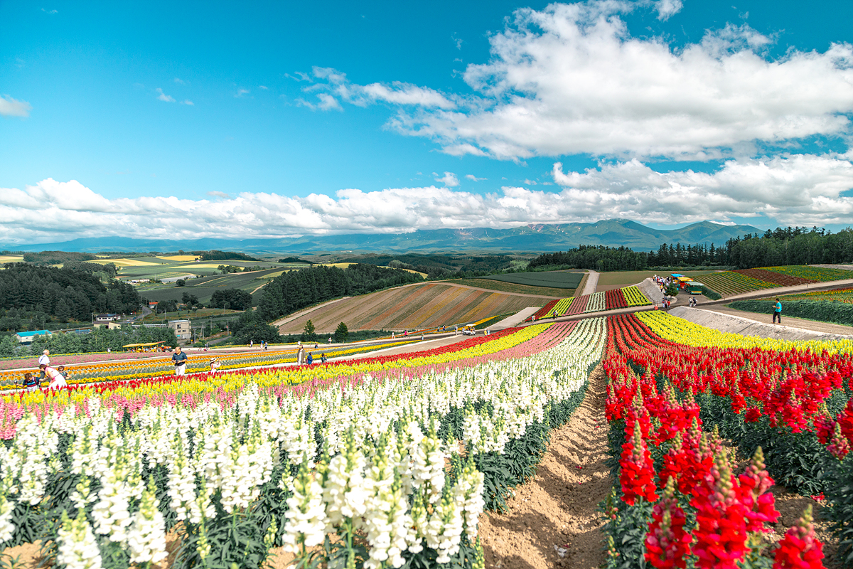 겨울의 비에이는 주변이 온통 하얀 눈으로만 덮혀 있는 풍경을 마주할 수 있을텐데, 여름의 비에이는 그야말로 화려한 꽃밭이 널린 곳이 됩니다. 그 중에서도 가장 화려한 꽃을 볼 수 있는 곳이 바로 '사계채의 언덕'이 있는 곳인데요. 드넓은 평원과 구릉지대에 정말 많은 꽃들을 심어 놓아 여름이 되면 알록달록 마치 양탄자같이 아름다운 꽃의 모습을 즐길 수 있어요.