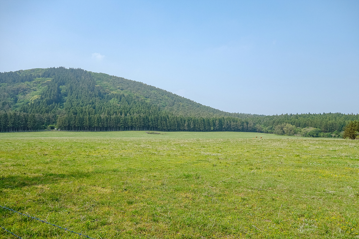 주차장에서 오름 입구로 들어서면, 먼저 넓은 초원과 목초지 산책로가 펼쳐집니다. 이곳은 소와 말이 방목되는 평탄한 둘레길로, 걷는 내내 제주만의 한적한 풍경을 느낄 수 있습니다.