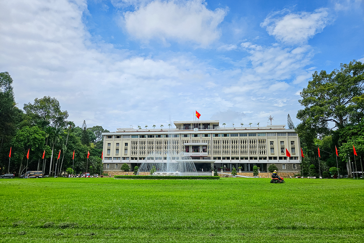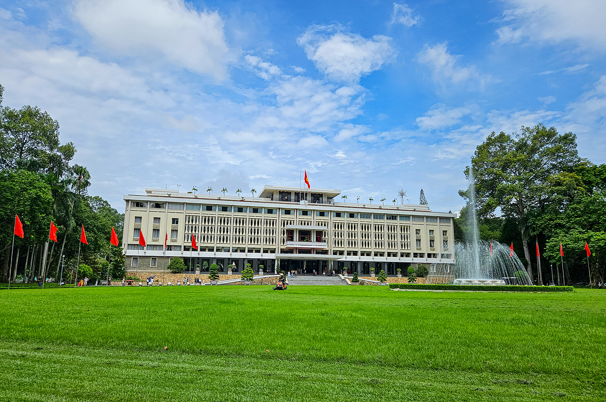 이 건물의 역사는 꽤 깁니다. 1873년 프랑스 식민지 시절에 지어진 건물로, 한때는 프랑스 총독이 사용했고, 이후 베트남이 독립하면서 남베트남의 대통령궁으로 쓰이다가 지금에 이르게 된 곳이예요.