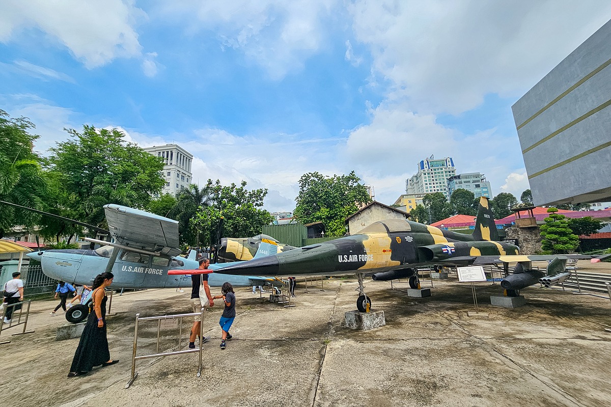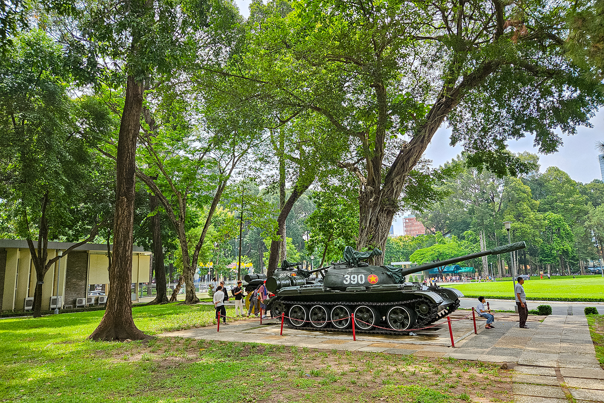 야외에는 베트남 전쟁 당시 북베트남군이 사용했던 탱크와 전투기가 전시되어 있었습니다. 그 중에서도 '390 탱크'는 이 궁전(당시 사이공궁)에 가장 먼저 진입한 탱크로 알려져 있어 베트남에서는 꽤나 의미가 깊다고 합니다.
